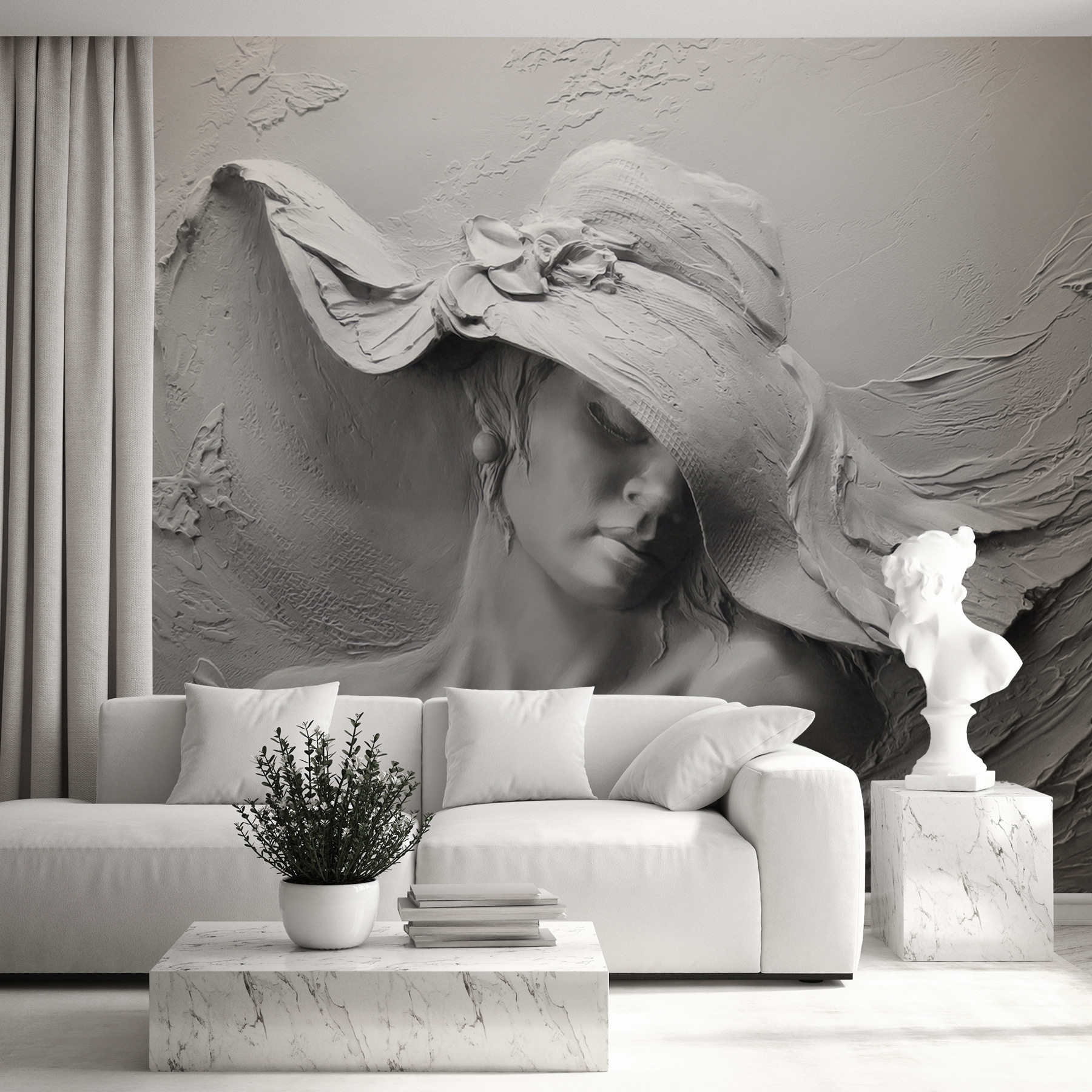 2 valoraciones en Fotomurales Escultura de una mujer con sombrero