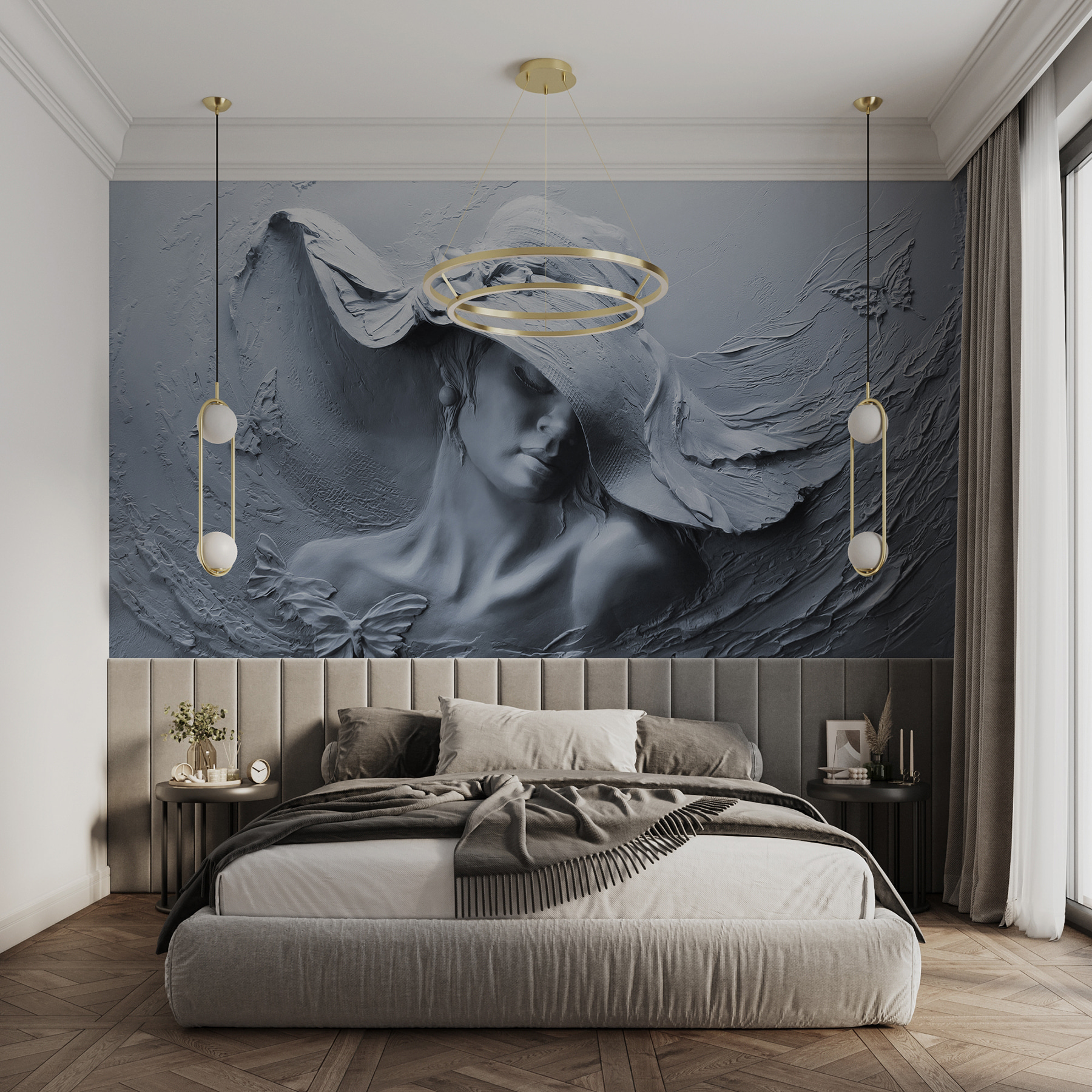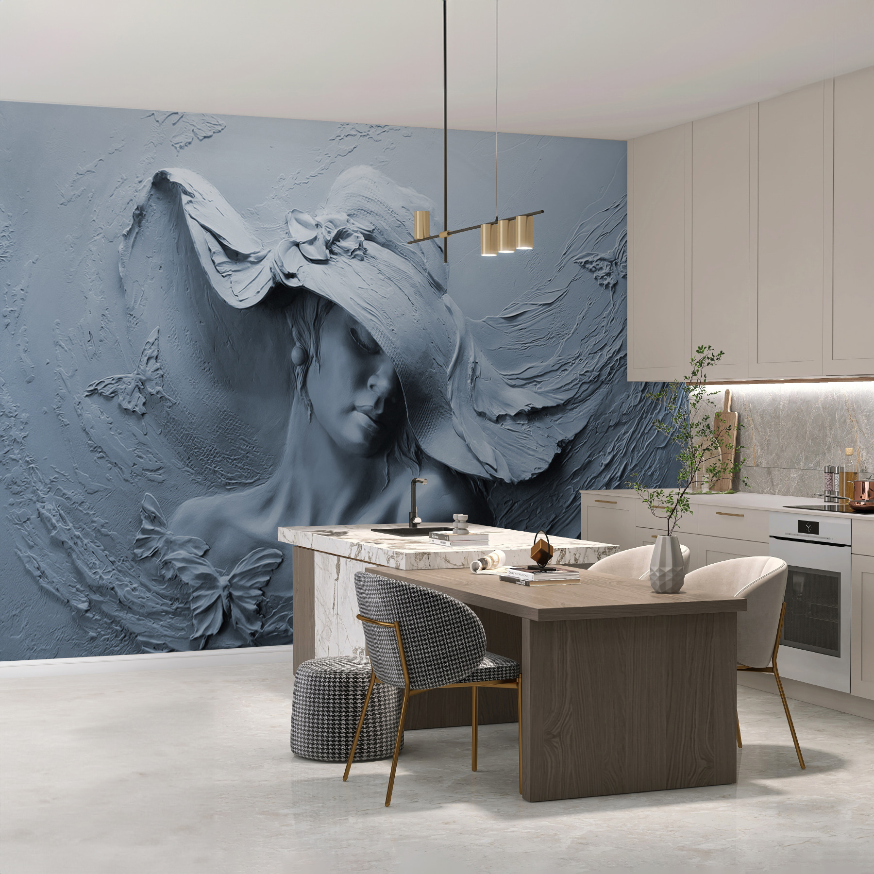 Transforme su espacio con este cautivador mural de pared, con una serena escultura de una mujer con sombrero. Es como traer una suave brisa a su habitación, instantáneamente edificante. Imagínese sentada con su libro favorito, las delicadas mariposas que se arremolinan a su alrededor parecen casi vivas. Esta llamativa pieza no sólo añade interés visual, sino que despierta sueños e historias. Perfecta para fomentar la creatividad o simplemente para despertar una sonrisa al pasar. ¿Tiene una pared en blanco? Este mural es como un cálido abrazo, acogedor y un poco misterioso. Perfecto para cualquiera que ame la decoración única que habla al alma.