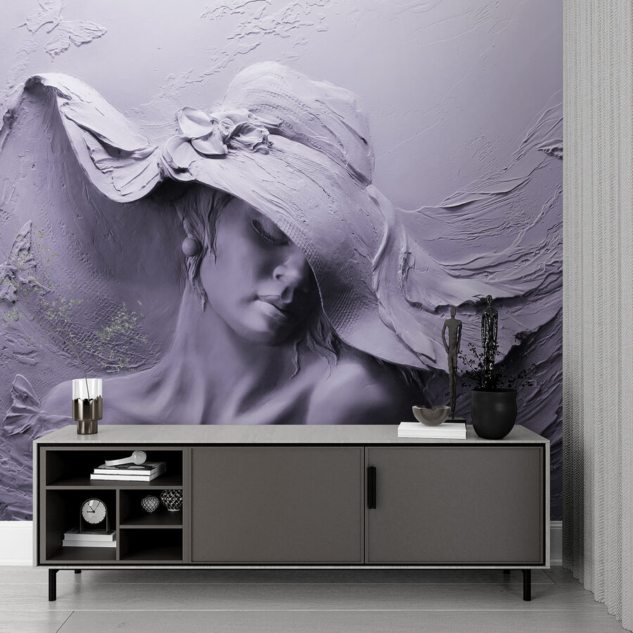 Imagina que entras en tu salón y te recibe este impresionante mural de una mujer con sombrero: elegante, sofisticado y rodeado de delicada lavanda y mariposas revoloteando. Es como entrar en una galería de arte, pero mucho más acogedor. El efecto 3D hace que todo resalte, casi como si la escultura pudiera asomarse y acompañarte a tomar el té. Abre el espacio, haciéndolo más amplio y soñador. Es como vivir en una pequeña burbuja de calma y belleza perfumada con lavanda. Tus amigos te preguntarán dónde has encontrado una pieza tan única.