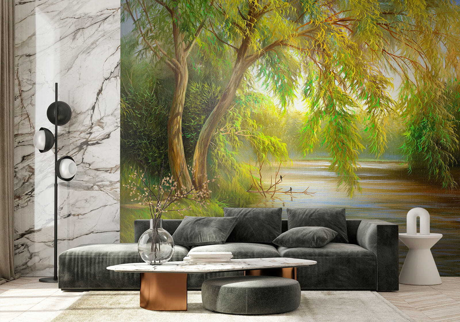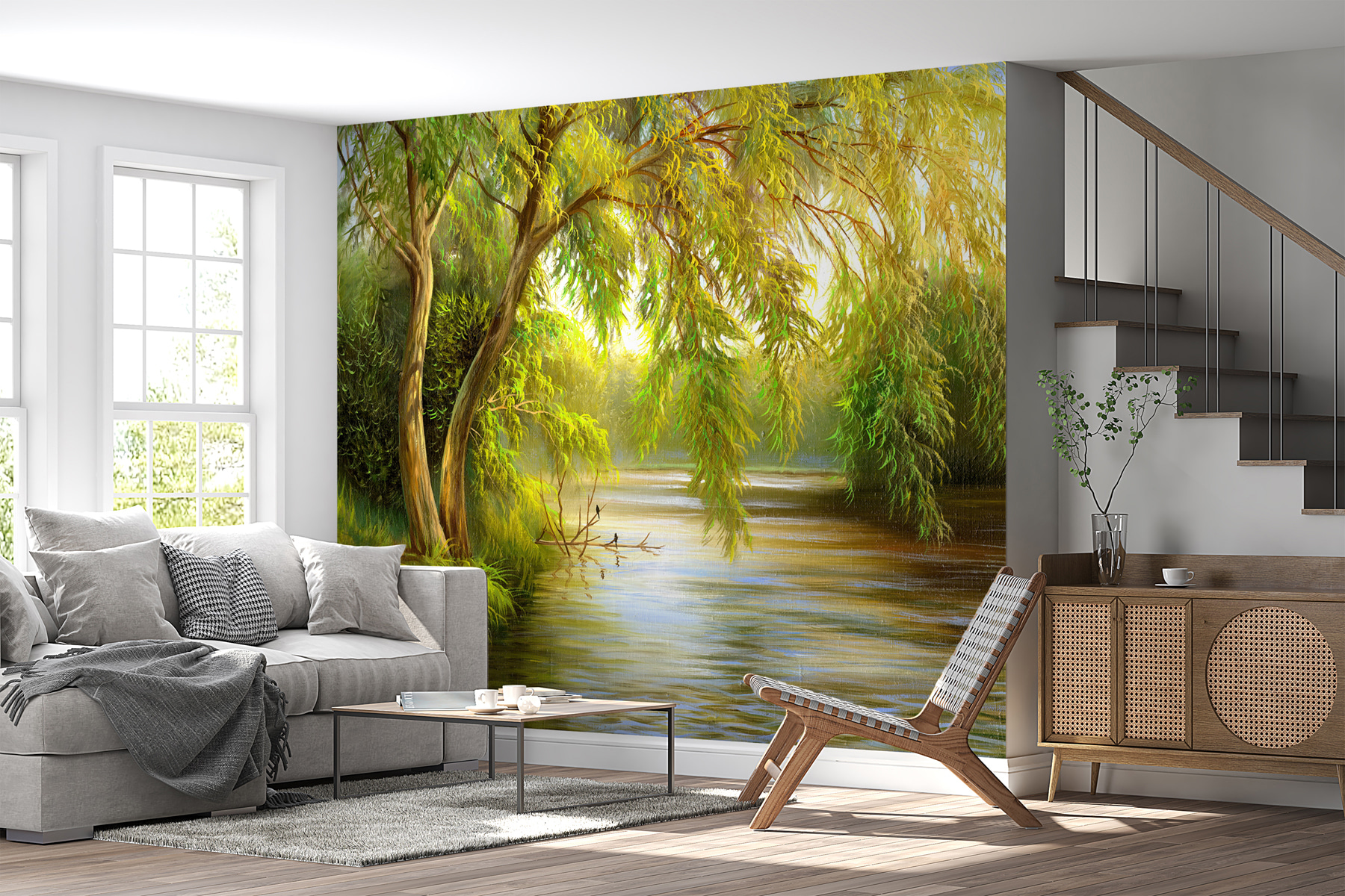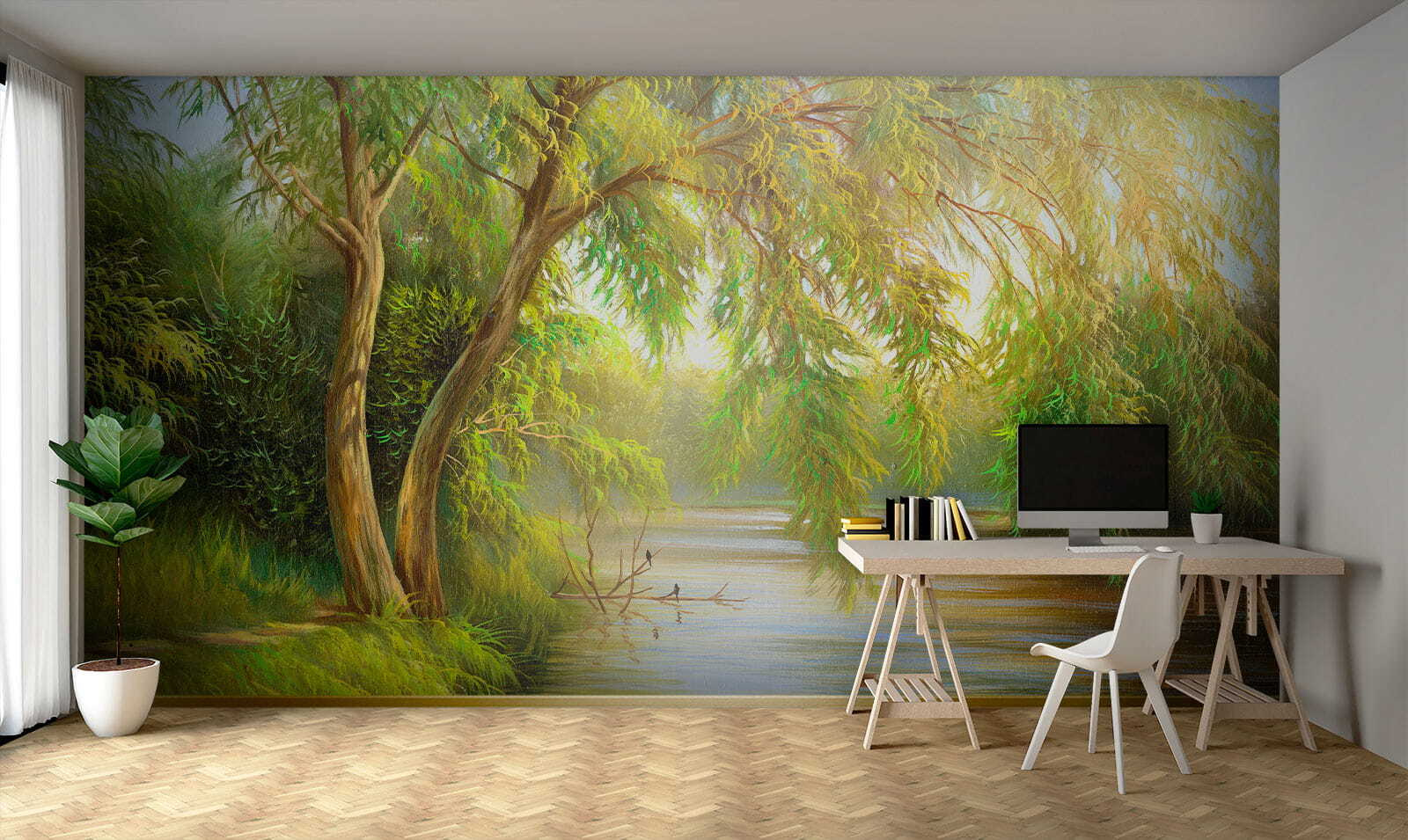 Transforme su espacio con un mural que le hará sentir como si se adentrara en la naturaleza. Este encantador diseño muestra un árbol sereno adornado con exuberante verde y cálidas hojas amarillas, capturando perfectamente ese resplandor de la hora dorada. Imagínese descansando en su salón, tomando el té, mientras este mural le susurra historias de la naturaleza. Es como tener un minibosque en la pared, que aporta ese ambiente refrescante sin bichos. Ya sea en un rincón acogedor o en un despacho luminoso, esta pieza invita a la calma y a la inspiración. No se sorprenda si le dan ganas de empezar un jardín.