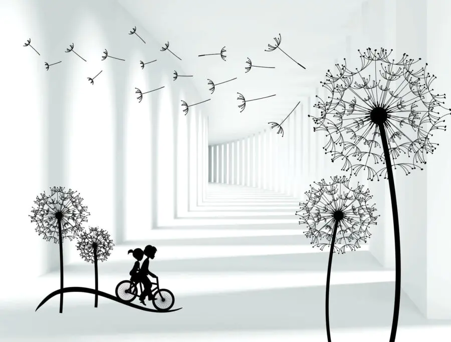 Transforme su espacio con este caprichoso mural de pared en el que aparecen un niño y una niña montando en bicicleta por un paisaje de ensueño lleno de dientes de león. Las juguetonas siluetas invitan a una sensación de libertad y aventura, despertando recuerdos de despreocupados días de infancia y paseos a la luz del sol. Imagina despertarte cada mañana, gratamente sorprendido por esta alegre escena que añade un toque de encanto a tus paredes. Es como llevar un trozo de nostalgia a tu hogar. Perfecto para salones, salas de juegos o incluso para ese pequeño rincón de lectura, este mural no es sólo decoración, ¡es un viaje encantador a la espera de suceder!