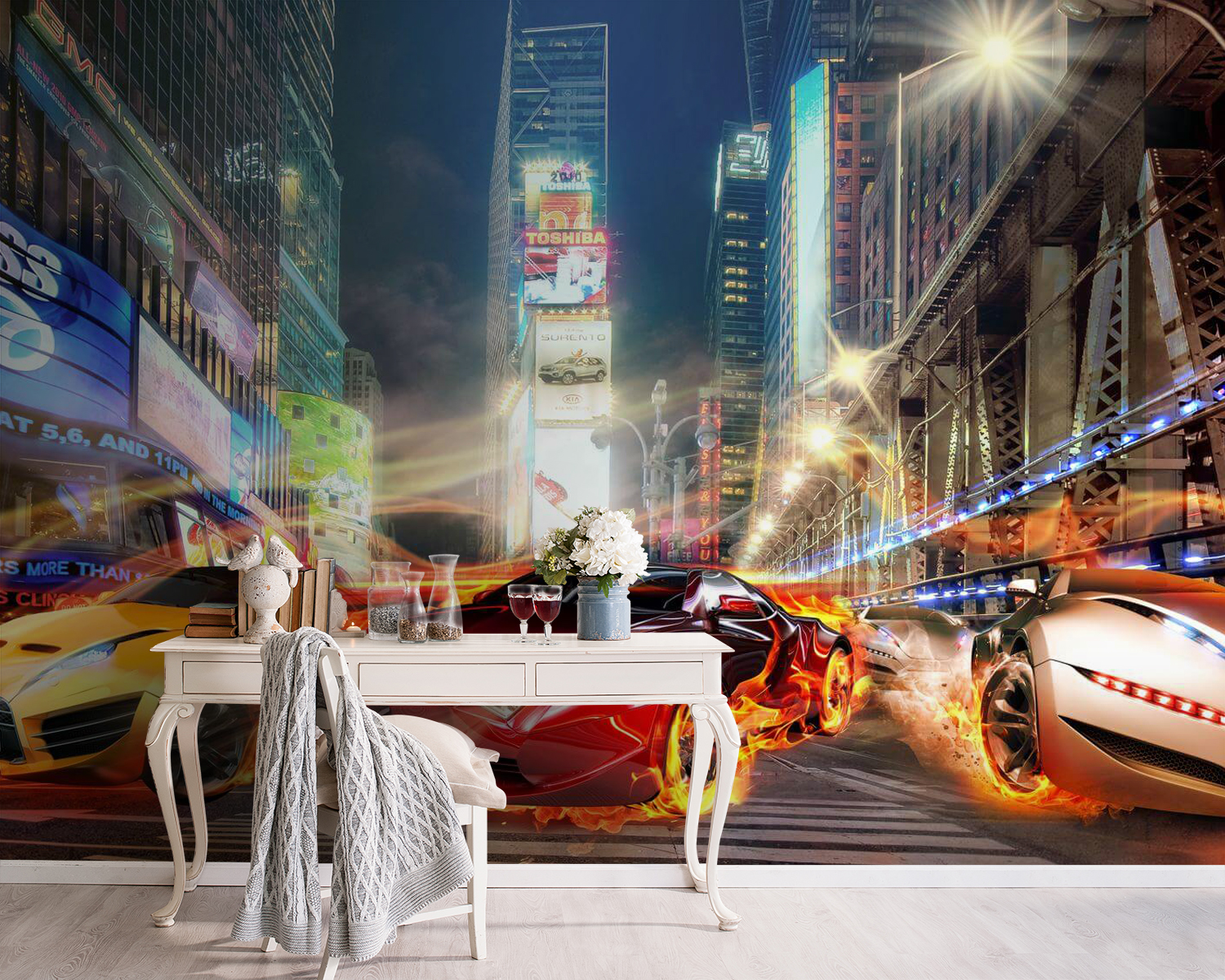 ¿Tienes un hijo que es un adicto a la velocidad, o quizás tú mismo estás un poco loco por los coches? Echa un vistazo a este genial mural de un deportivo rojo que parece estar ardiendo, ¡literalmente! Es como hacer una parada en boxes en medio de una carrera a toda velocidad por el corazón de la ciudad. Imagine que su hijo o hija se siente como un minicarro cada vez que entra en su habitación. La energía y las llamas prácticamente saltan de la pared, subiendo la adrenalina. Perfecto para un cuarto de juegos o una cueva de hombres. Prepárate para una decoración con mucho estilo.