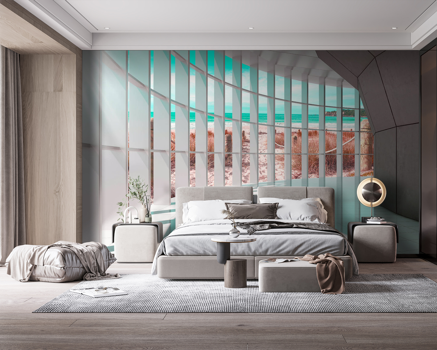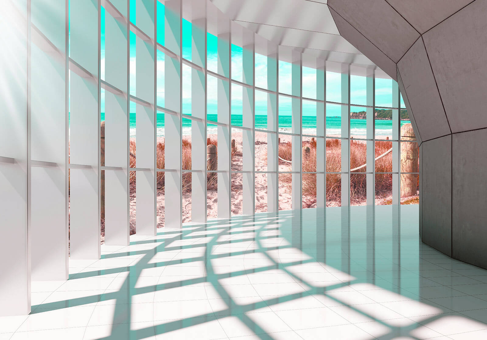 Imagine entrar en una habitación bañada por la cálida luz del sol, donde el tranquilo océano azul le da la bienvenida a través de elegantes y modernas ventanas. Eso es exactamente lo que obtendrá con el mural de pared “Habitación iluminada por el sol con vistas al océano”. No es sólo un mural, ¡son unas minivacaciones para sus paredes! Perfecto para añadir un toque de serenidad costera a cualquier espacio. Tanto si se trata de su salón como de un espacio de trabajo, este impresionante diseño en 3D le hará sentir como si estuviera allí mismo, en la playa. Casi se oyen las olas, ¿verdad? Sumérgete en esta vista y deja que un trozo del océano calme tu día. Hermoso y relajante, hará que tu hogar se sienta como un paraíso junto al mar. 🌊🌞