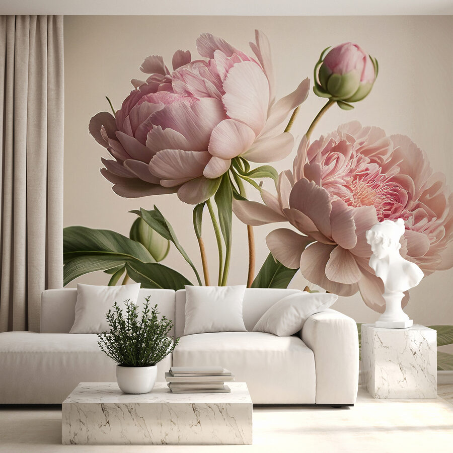 1 valoración en Fotomurales Flores de peonía en suaves tonos rosados