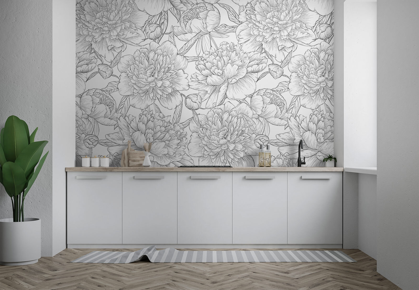 ¿Quiere dar un toque de encanto floral a su espacio? Eche un vistazo a este mural de pared “Patrón floral detallado”. Es como tener un jardín interminable de peonías en la pared, sin tener que regar ni quitar las malas hierbas. El intrincado diseño parece haber sido esbozado por un artista botánico que no podía dejar de garabatear peonías. Perfecto para añadir un toque de elegancia inspirada en la naturaleza a tu salón, dormitorio o incluso oficina. Imagínatelo: cada mañana, saboreas tu café rodeado de delicadas flores en flor. Suena de ensueño, ¿verdad? Además, ¿el diseño en blanco y negro? Muy versátil. Combina a la perfección con cualquier estilo de decoración, haciéndote sentir como si estuvieras envuelto en un abrazo floral, acogedor y tan bonito.