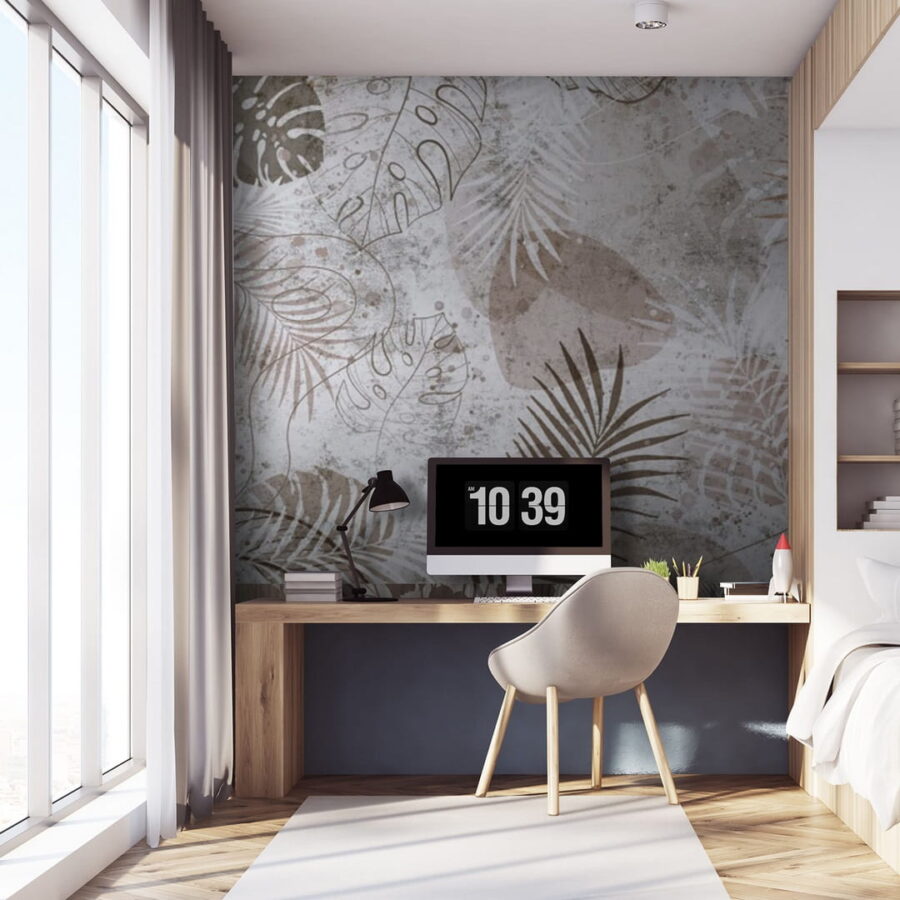 Transformar una pared en un refugio de ensueño es tan sencillo como colocar este mural de hojas tropicales en tonos apagados. Imagínese hundiéndose en un cómodo sillón, tal vez saboreando una bebida (con sombrilla opcional), mientras los sutiles matices de la naturaleza le envuelven. Estos suaves verdes y marrones se mezclan tan armoniosamente que parece como si las hojas le susurraran secretos del trópico. Perfecto para crear un ambiente relajado en salones, dormitorios o ese rincón estético que llevas tiempo queriendo decorar. Cada mirada a este mural puede despertar sueños despiertos de vacaciones y tardes de ocio. ¿Quién no querría tener un pedacito de paraíso en casa? Además, es un fantástico telón de fondo para todas esas videollamadas de Zoom desde la oficina en casa: todo el mundo pensará que estás descansando en un refugio tropical. ¡Lo más difícil será decidir dónde colocarlo!