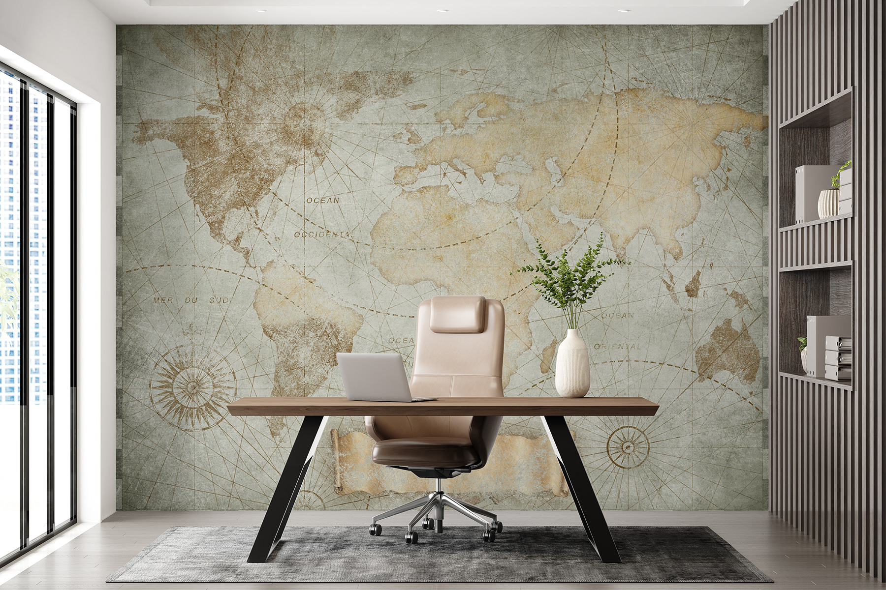 Eche un vistazo a este mural de mapamundi vintage: es como tener un trozo de historia en la pared. Perfecto para los amantes de los viajes o para cualquiera a quien le gusten las vibraciones antiguas, este mural aporta un encanto del viejo mundo a cualquier habitación. Imagínese acurrucándose con un libro bajo este detallado mapa, trazando antiguas rutas con el dedo. Los tonos apagados y el aspecto envejecido le dan un aire acogedor y acogedor. No es sólo decoración, es un tema de conversación. Además, puede que te inspire para tu próxima gran aventura. Todo un triunfo para tus paredes.
