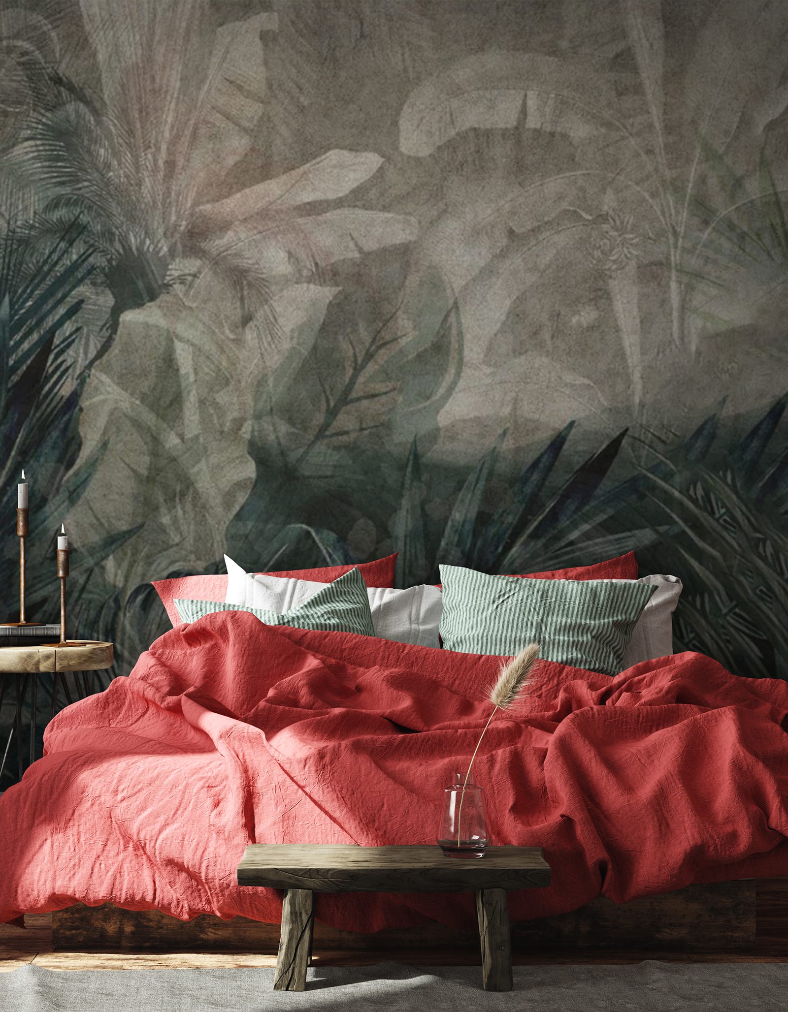 Transforme cualquier espacio en un oasis de tranquilidad con este impresionante mural de hojas sobre un sutil fondo gris. Imagínese entrar en su habitación y ser recibido por una exuberante jungla, ¡sin los molestos bichos, por supuesto! Los tonos suaves aportan una energía calmante, perfecta para relajarse después de un largo día. Este mural no es sólo decoración; es como un suave susurro de la naturaleza que invita a la serenidad en tu hogar. Sus amigos pensarán que se ha escapado al trópico. Perfecto para un rincón acogedor o una zona de estar animada, canaliza ese espíritu tropical y deja que tus paredes cuenten una historia.