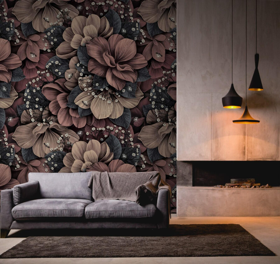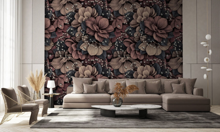 Imagínese esto en su salón: un motivo floral elegantemente detallado que le hace querer mirarlo todo el día. Este mural tiene un diseño cálido e intrincado que casi parece vivo. Los ricos colores se mezclan maravillosamente, creando una sensación de profundidad que te atrae. Es como tener un exuberante jardín en la pared, sin necesidad de regarlo.