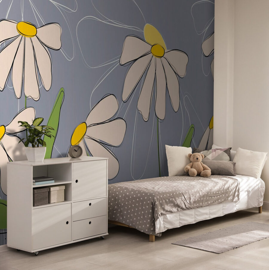 ¡Ilumina cualquier espacio con este mural caprichoso! Con encantadoras flores sobre un fondo gris suave, aporta un toque de naturaleza al interior. Imagínate: despertarte cada mañana con estas preciosas flores, como si la primavera hubiera decidido irrumpir en tu salón. Las líneas juguetonas y los colores suaves transmiten relajación, perfectos para acurrucarse con un buen libro o tomar un café mientras sueñas despierto. Es como tener un mini jardín que nunca se marchita, ¡sin necesidad de tener mano para las plantas! Además, es una forma divertida de alegrar una pared aburrida. ¡Anímate, deja que estas margaritas alegren tu día!