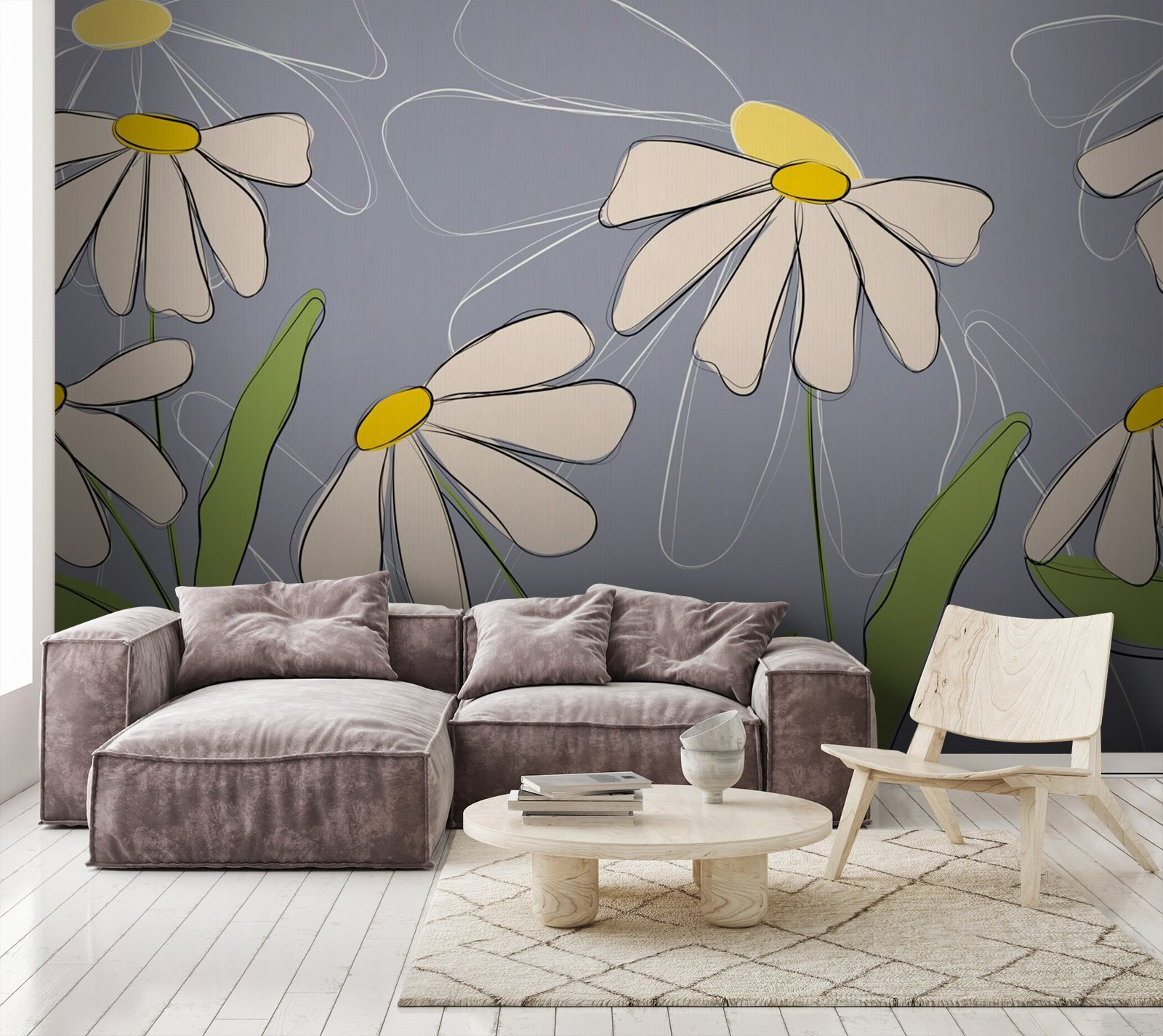 ¡Ilumina cualquier espacio con este mural caprichoso! Con encantadoras flores sobre un fondo gris suave, aporta un toque de naturaleza al interior. Imagínate: despertarte cada mañana con estas preciosas flores, como si la primavera hubiera decidido irrumpir en tu salón. Las líneas juguetonas y los colores suaves transmiten relajación, perfectos para acurrucarse con un buen libro o tomar un café mientras sueñas despierto. Es como tener un mini jardín que nunca se marchita, ¡sin necesidad de tener mano para las plantas! Además, es una forma divertida de alegrar una pared aburrida. ¡Anímate, deja que estas margaritas alegren tu día!