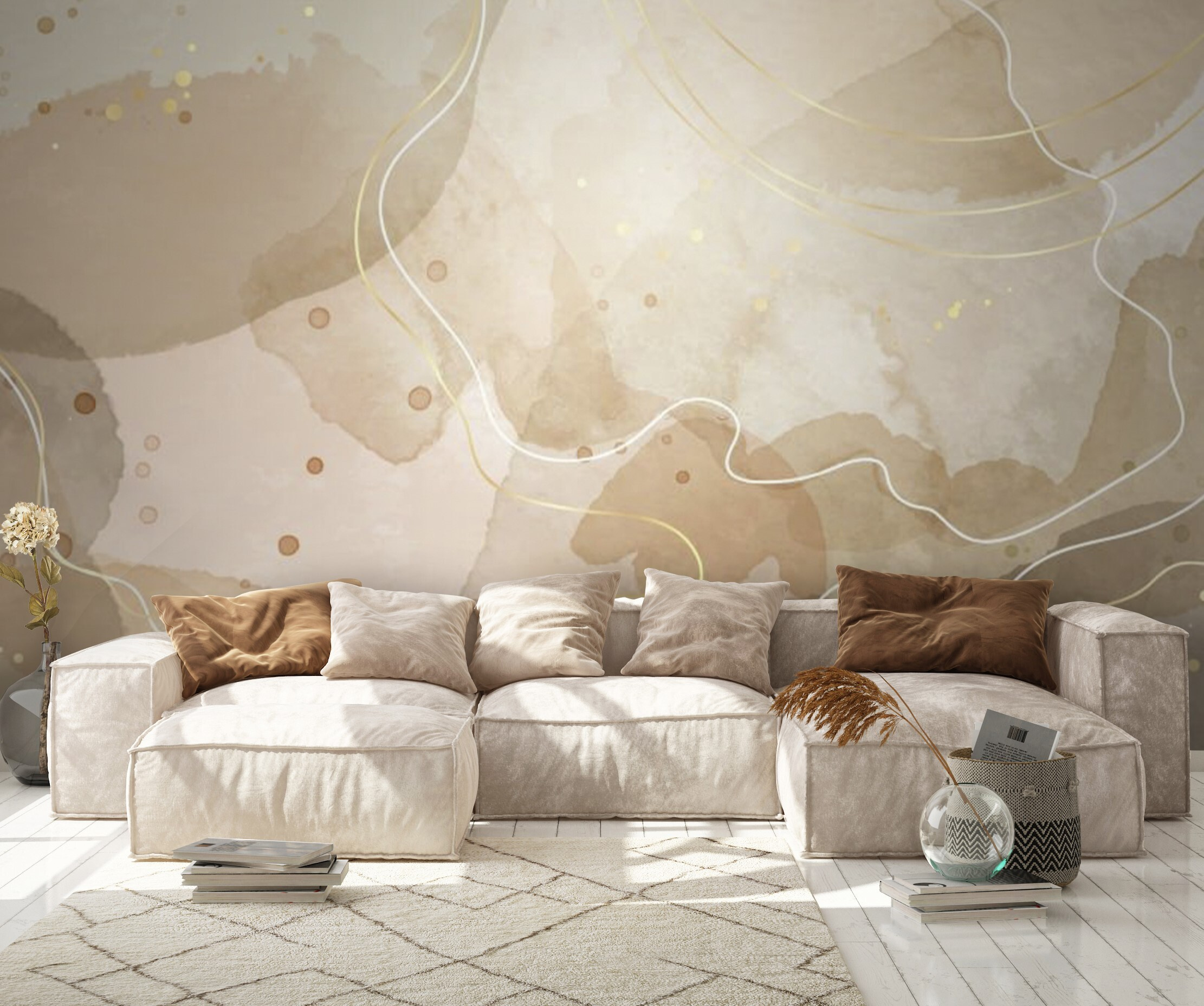 Imagínese tomando su café matutino mientras disfruta de la suave calidez de nuestro mural de pared “Acuarela abstracta beige y amarilla”. Es como tener su propio amanecer dentro de casa. Los tonos suaves y terrosos se mezclan sin esfuerzo, creando un ambiente relajante que hace que cualquier habitación se sienta como un refugio acogedor. Sabes, hay algo en esos delicados tonos y sutiles patrones – casi parecen susurrar, “Tómatelo con calma”. Perfecto para esos rincones zen o incluso para ese salón funky. Es arte y relajación, con un toque de sofisticación. Además, por algo está en la categoría de Acuarelas Populares: ¡a todo el mundo le encanta! Así que, si busca añadir un toque de tranquilidad y estilo a su espacio, este mural podría ser su nuevo mejor amigo.