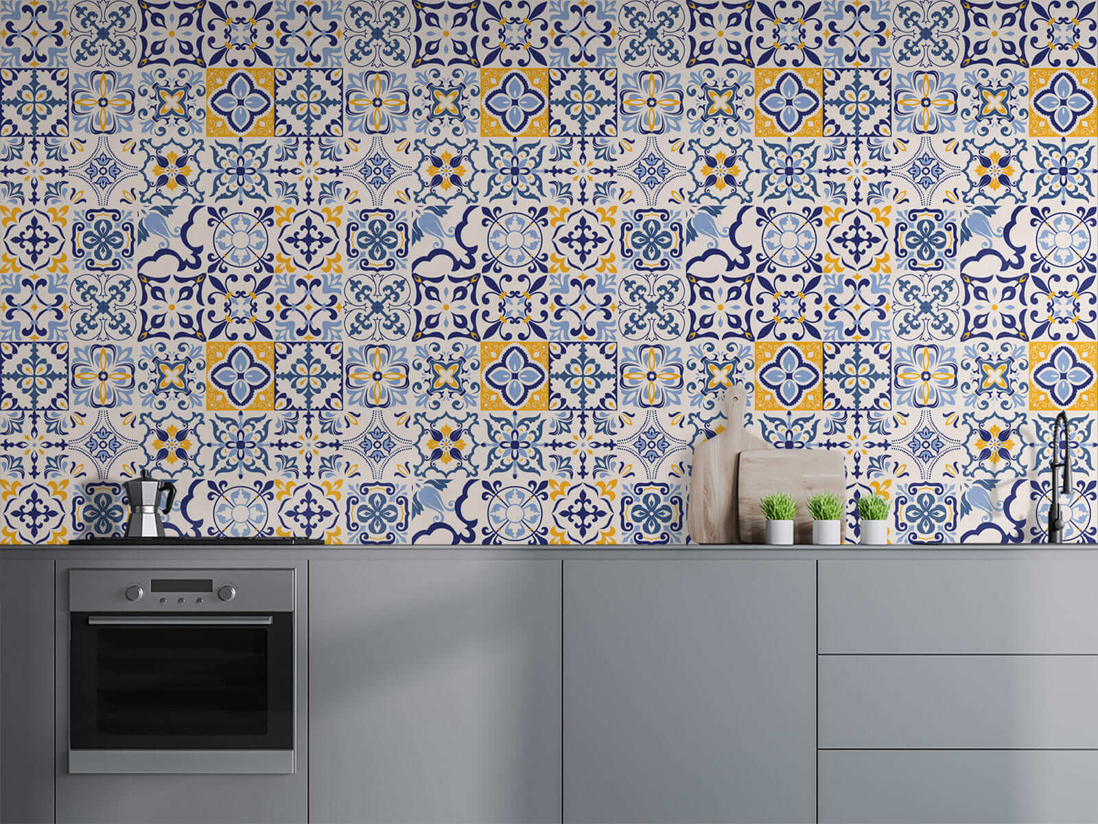 Transforma tu espacio con este vibrante mural de pared con un impresionante diseño de azulejos azules y amarillos. Es como llevar un poco del encanto mediterráneo directamente a tu hogar. Imagínate entrando en una acogedora cafetería en España, saboreando un café mientras te empapas de los hermosos diseños que te rodean. Las formas geométricas bailan por tu pared, añadiendo un toque divertido que te alegra cada vez que pasas por delante. Es perfecto para alegrar una habitación aburrida o crear un fondo animado para tu próxima reunión. Imagina a tus amigos admirando tu buen gusto mientras tú, en secreto, disfrutas de la gloria de tu fabulosa elección decorativa. ¿Por qué conformarte con paredes aburridas cuando puedes tener una obra de arte que parece cobrar vida?