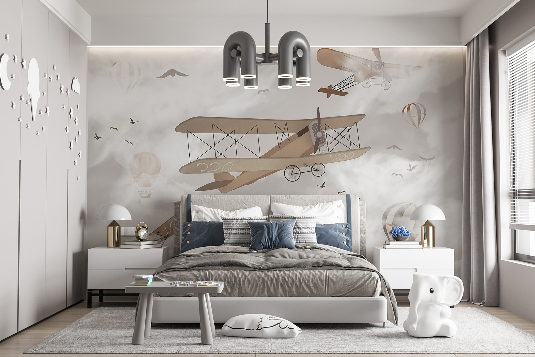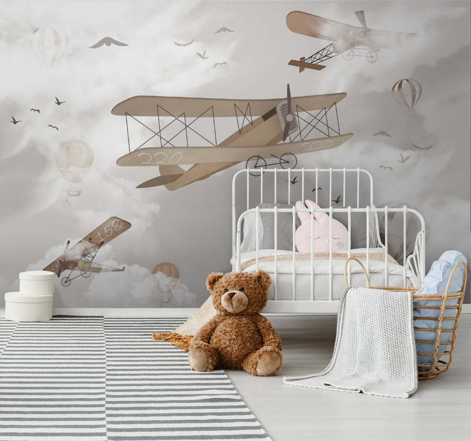 Imagine elevarse por encima de las nubes con este encantador mural de pared, “Globo aerostático en el cielo”. Perfecto para habitaciones infantiles o para cualquier persona joven de corazón, el caprichoso diseño de este mural muestra globos aerostáticos y aviones antiguos bailando entre las nubes, ¡totalmente de ensueño! Imagínese despertarse con esta escena cada día, como si estuviera en una aventura sin fin.