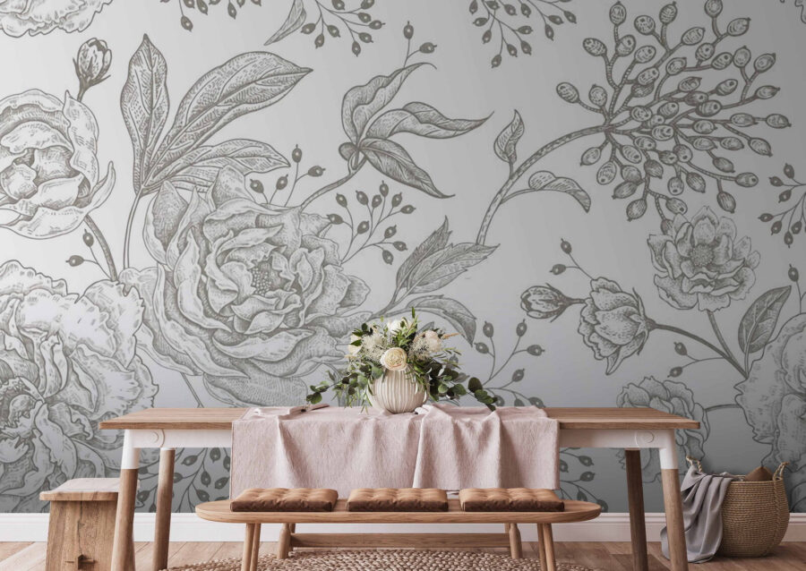 Transforma tu espacio con este impresionante mural de pared con delicados diseños florales en tonos suaves. Imagínate despertarte con una suave cascada de peonías y delicados capullos, como si la propia naturaleza hubiera decidido instalarse en tu pared. Este mural no solo embellece, sino que es como un soplo de aire fresco para tu habitación. Perfecto para un rincón acogedor o un ambiente sereno en el dormitorio, invita a la calma con sus colores suaves y sus intrincados detalles. Además, ¡es un excelente tema de conversación! Tus amigos te preguntarán dónde has encontrado esta obra maestra floral de ensueño. Lleva un poco de la magia del jardín al interior de tu hogar, ¿quién no querría eso?