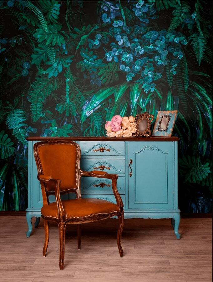 Este mural transforma cualquier espacio en un oasis sereno y exuberante. Ya sea en el salón, en el dormitorio o incluso en el despacho de casa, el vibrante detalle captura la esencia de una selva tropical, ¡menos la humedad y los bichos! Imagínate hundiéndote en tu sillón favorito con un buen libro, sintiéndote como si estuvieras escondido en un acogedor rincón de la selva. No es sólo decoración, es una experiencia. Si las paredes pudieran susurrar, estarían gritando: “¡Bienvenido a tu propio jardín secreto!”.