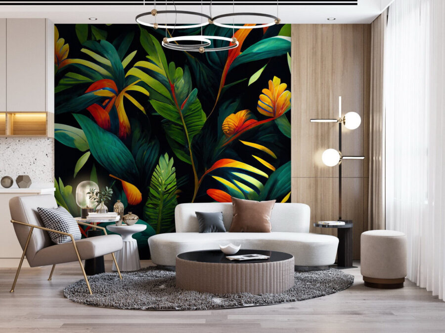 1 valoración en Fotomurales Vibrantes hojas y flores tropicales