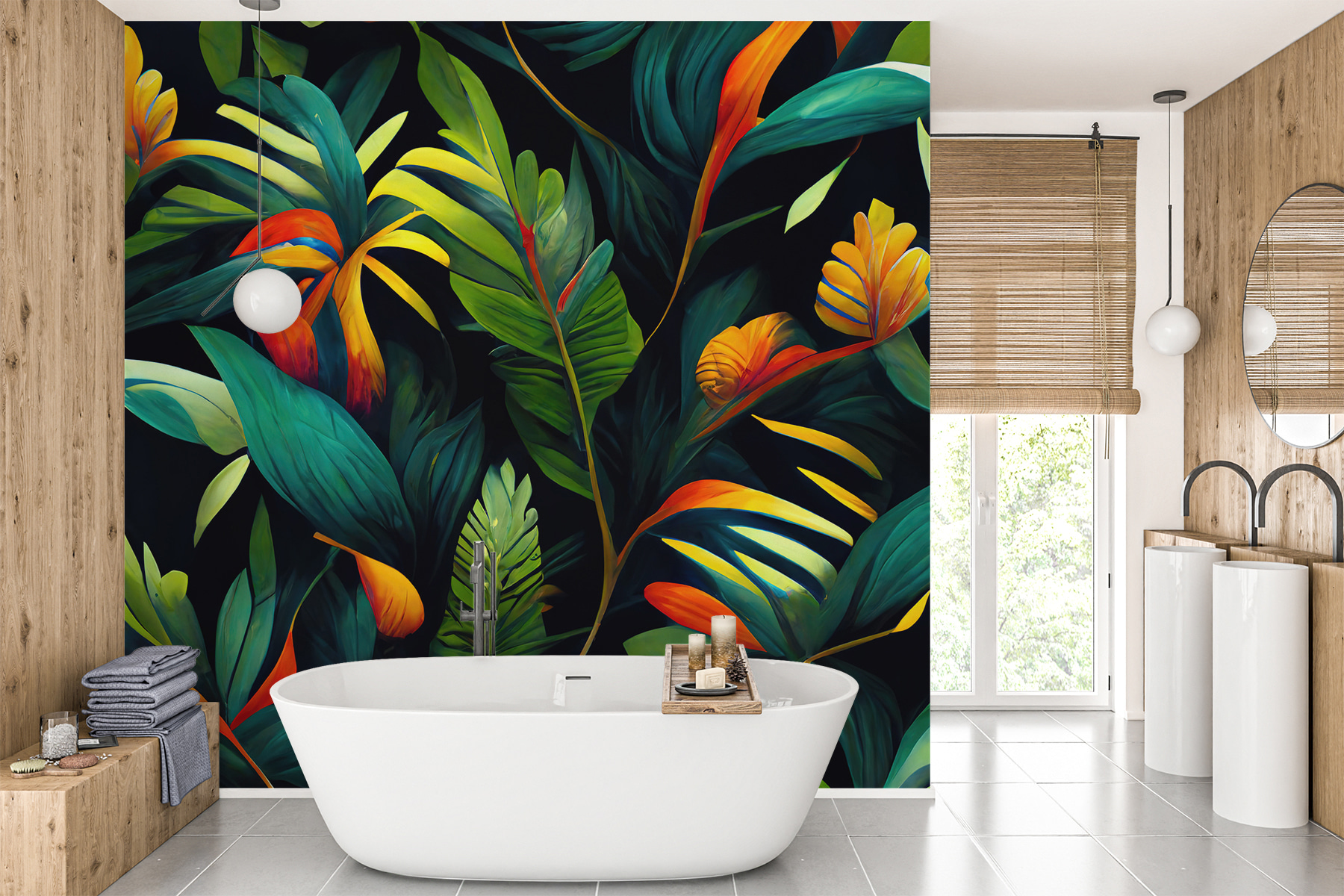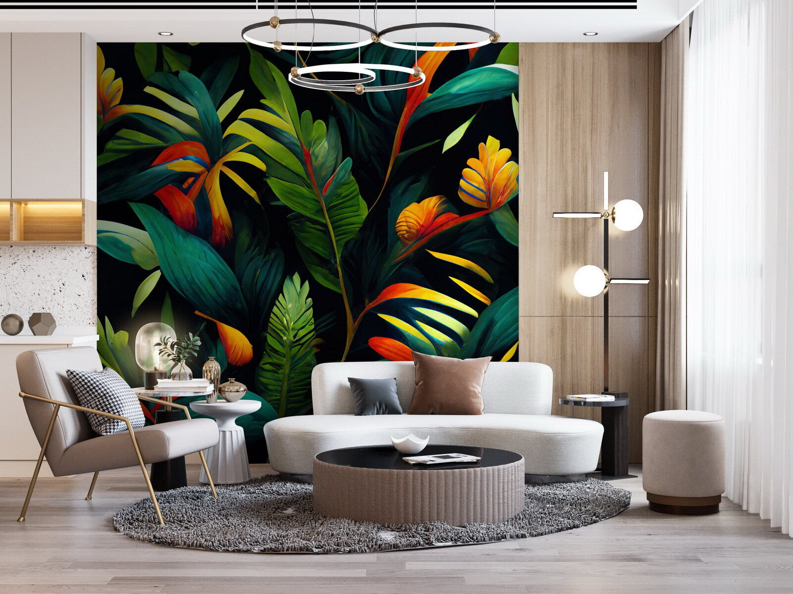Transforme cualquier habitación en un oasis tropical con estos vibrantes murales de pared. Imagínese entrar en un exuberante paraíso todos los días, donde los verdes profundos y los estallidos de colores cálidos le hacen sentir como si estuviera de vacaciones permanentes. La juguetona mezcla de hojas y flores da vida y energía a sus paredes, creando un ambiente alegre que incluso hace que los lunes por la mañana parezcan más alegres. A los invitados les costará concentrarse en la conversación si se pierden en este paraíso botánico. Perfecto para un acogedor salón o un animado despacho, es como añadir un trocito de naturaleza a tu hogar. Disfrute de la alegría de vivir en plena floración.
