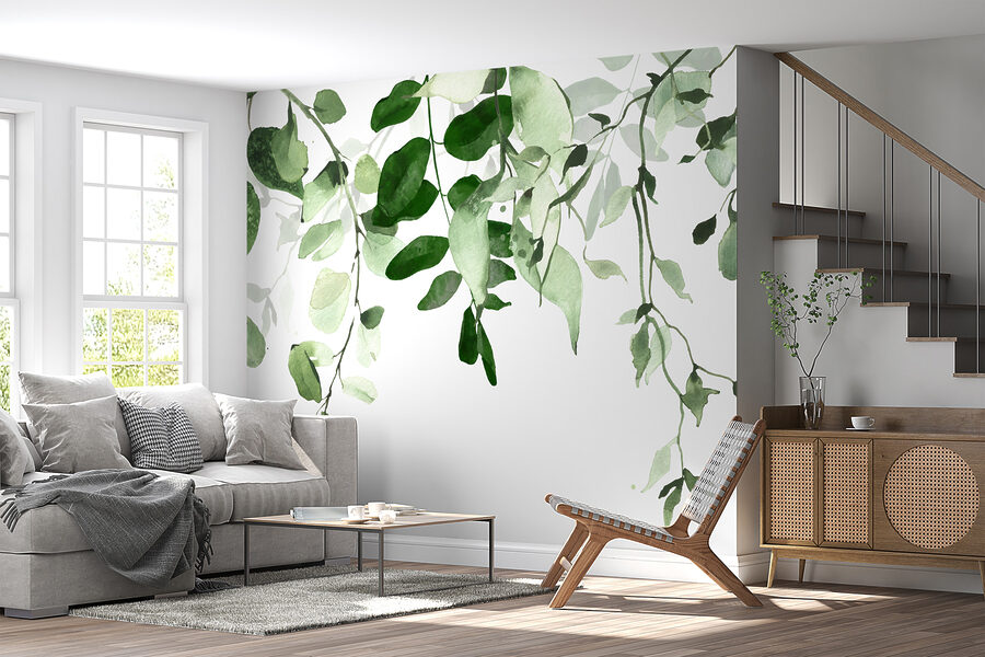 Imagínese que entra en su dormitorio o salón y le recibe un precioso mural de hojas verdes en acuarela. Es como entrar en un bosque fresco y relajante, ¡sin los bichos, por supuesto! Los verdes suaves y vibrantes de este mural sobre un fondo blanco nítido traen un pedazo de naturaleza al interior de una manera tan suave y agradable. Es perfecto para cualquier habitación que necesite un toque de tranquilidad.