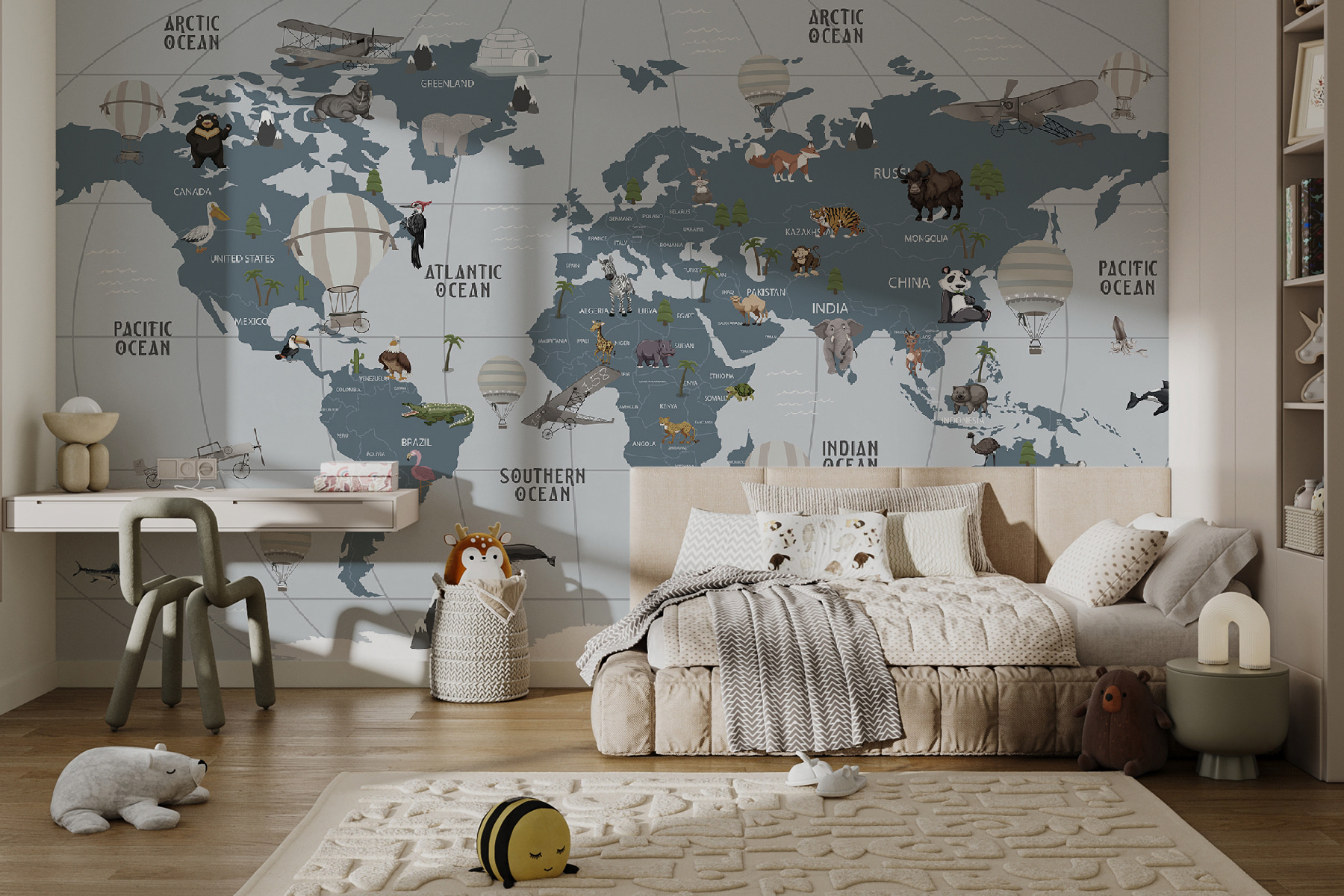 Imagina un mundo en el que la aventura se eleva a lo más alto, todo desde la comodidad de tu habitación. Este mural “Globo aerostático en el cielo” es como un billete para viajar, perfecto para pequeños exploradores y soñadores. Con encantadores globos aerostáticos flotando sobre un divertido mapa, los niños pueden viajar por todo el mundo sin necesidad de hacer la maleta. Imagínate risas y emoción mientras señalan selvas, océanos y amigos peludos. No es sólo decoración; es un inspirador telón de fondo para historias, risas y una pizca de imaginación. Las paredes se convierten en ventanas a tierras lejanas, ¿y a quién no le encantaría eso? Perfecto para una habitación infantil o un cuarto de juegos, aporta calidez y fantasía. ¡Que empiecen las aventuras!