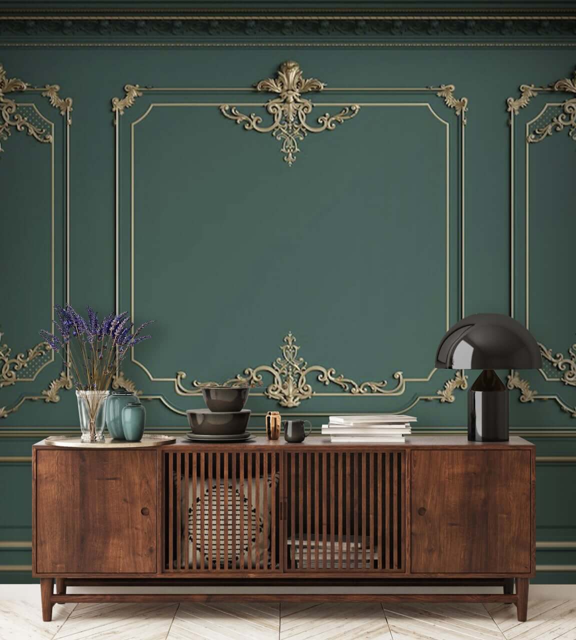 Transforme una pared aburrida en un país de las maravillas visuales con este mural, con elegantes diseños que susurran sofisticación. Imagínese entrar en una habitación en la que los tonos ricos le dan la bienvenida, creando un ambiente cálido y acogedor. Los intrincados efectos de boiserie añaden un toque de dramatismo, perfecto para recibir amigos o simplemente para disfrutar de una velada tranquila. Es como entrar en un elegante café o en una acogedora biblioteca, donde cada detalle cuenta una historia. Las divertidas curvas y líneas parecen bailar ante tus ojos, despertando la inspiración y la conversación. No es sólo decoración, ¡es un estado de ánimo!