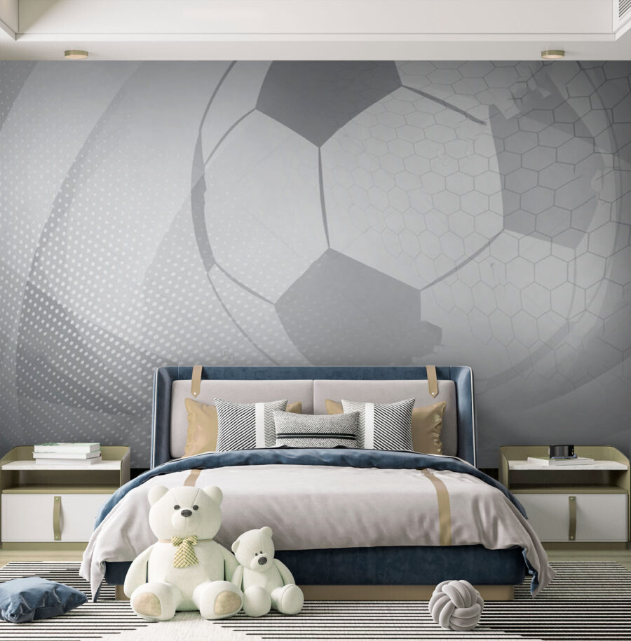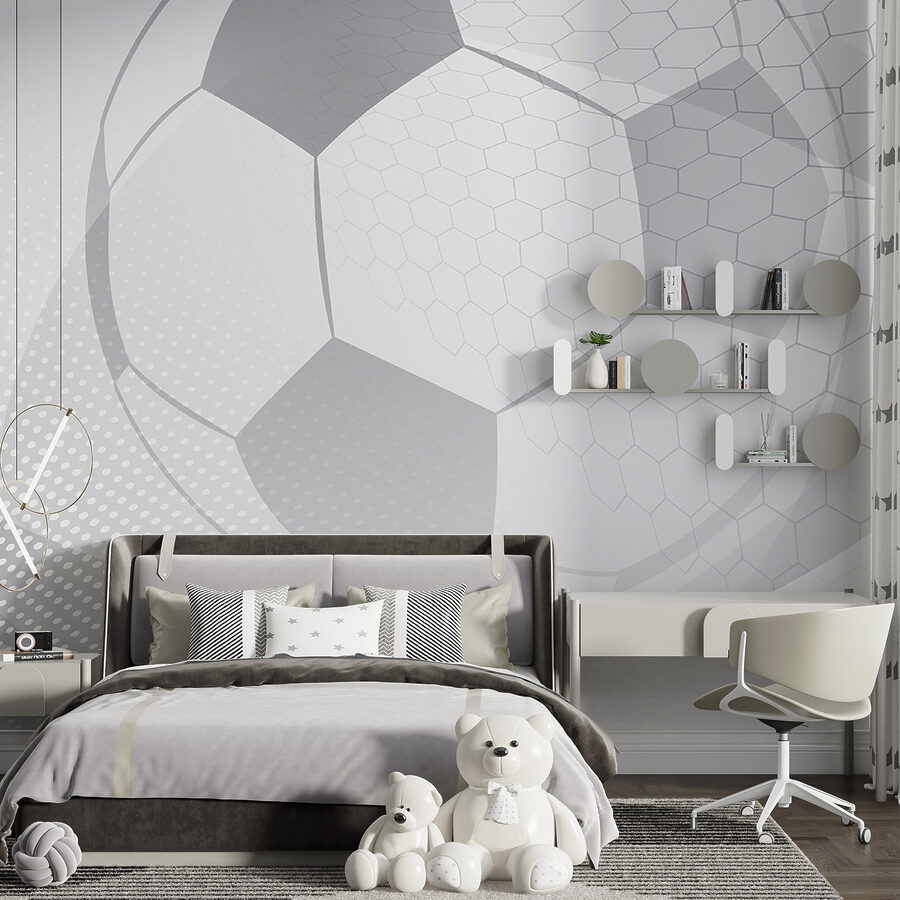Transforme cualquier espacio en el sueño de cualquier amante del fútbol con este mural geométrico en tonos grises. Imagine a los niños dando vueltas a sus ideas rodeados de un diseño lúdico que despierta su imaginación. Perfecto para un cuarto de juegos o un dormitorio, este mural añade un toque moderno a las vibraciones clásicas del fútbol. Los diseños y las formas atractivas atraen la mirada y crean una atmósfera dinámica que despierta el entusiasmo y la diversión. Es como celebrar un gol cada día, ¡sin tener que ensuciar los bocadillos! Prepárate para animar la creatividad, pared a pared.