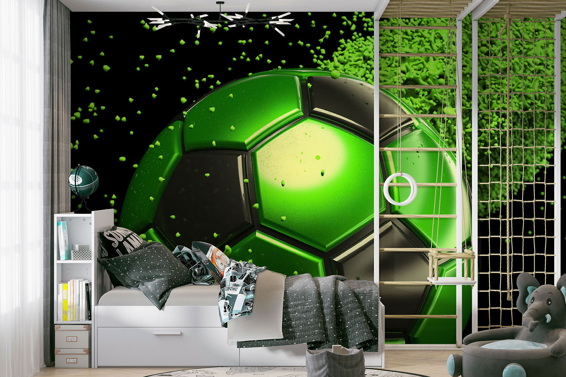 Transforma cualquier espacio con este divertido mural de hexágonos verdes y negros salpicados de pequeños puntos. Es como una explosión de energía que lleva la emoción del campo de fútbol directamente a tu casa. Imagínatelo: los amigos se reúnen el día del partido y, en lugar de paredes desnudas, les recibe este animado diseño. Es el telón de fondo perfecto para algunas discusiones animadas, tal vez un poco de rivalidad amistosa, también. Los colores vibrantes te harán soñar con goles y momentos emocionantes. Haz que tus paredes sean la comidilla de la ciudad, ¡y que corra el buen rollo!