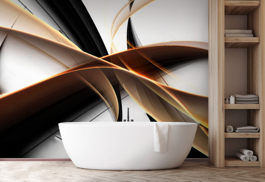 Imagínese esto: una salpicadura de deslumbrantes cintas tejiéndose entre sombras y luces, justo en su salón. “Abstract Ribbons of Light and Shadow” es como una danza artística plasmada en un mural, que combina a la perfección formas fluidas y un diseño elegante. Es como un susurro de elegancia y un toque de misterio.