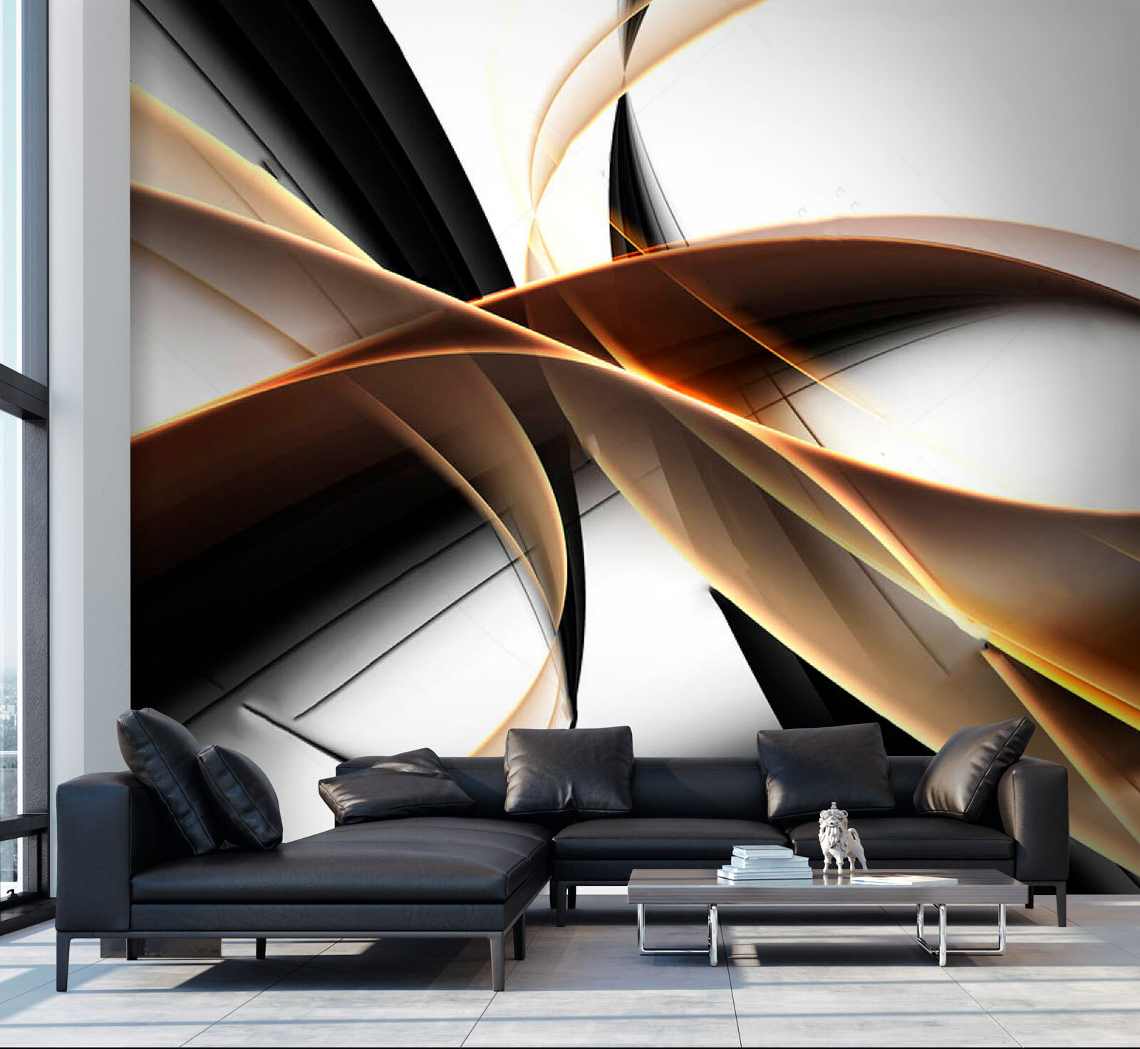 Imagínese esto: una salpicadura de deslumbrantes cintas tejiéndose entre sombras y luces, justo en su salón. “Abstract Ribbons of Light and Shadow” es como una danza artística plasmada en un mural, que combina a la perfección formas fluidas y un diseño elegante. Es como un susurro de elegancia y un toque de misterio.