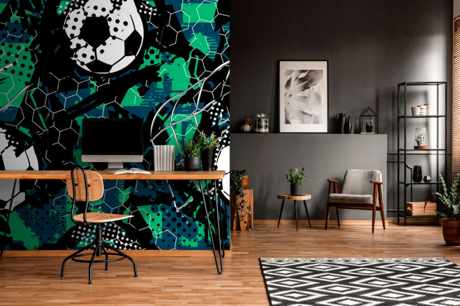 Hola a todos ¿Quieres decorar tu espacio con algo un poco más atrevido? Echa un vistazo a este mural “Abstract Soccer Pattern with Hexagons”: es la mezcla perfecta de arte y deporte. Los locos patrones geométricos y los atrevidos estampados de fútbol aportan una gran energía a cualquier habitación.