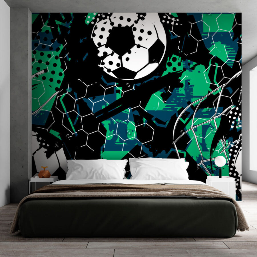Hola a todos ¿Quieres decorar tu espacio con algo un poco más atrevido? Echa un vistazo a este mural “Abstract Soccer Pattern with Hexagons”: es la mezcla perfecta de arte y deporte. Los locos patrones geométricos y los atrevidos estampados de fútbol aportan una gran energía a cualquier habitación.