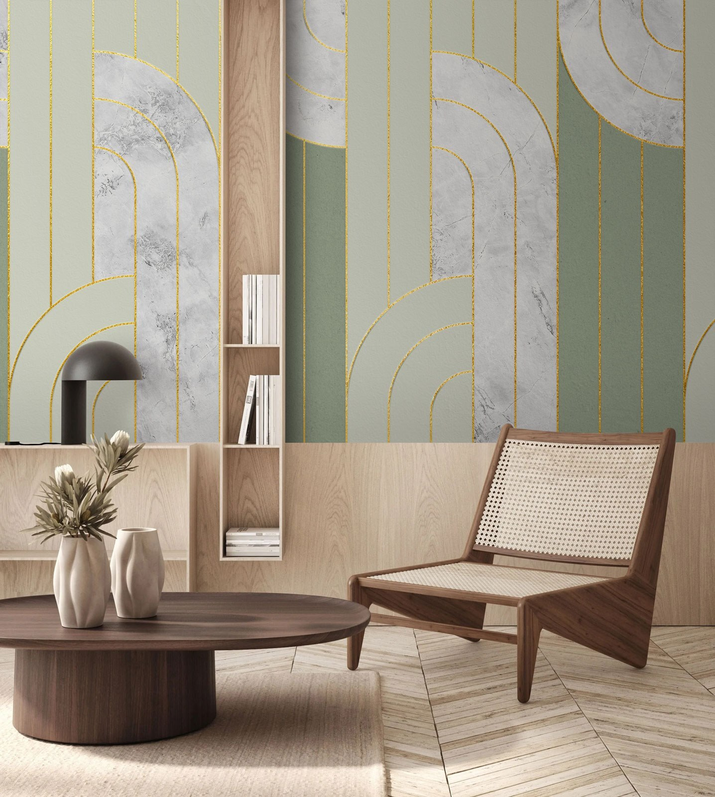 Transforme cualquier espacio con este mural de pared de elegantes motivos y colores relajantes. Imagínese entrar en una habitación donde las líneas suaves y fluidas bailan por las paredes, creando una atmósfera de calma. Es como un soplo de aire fresco para su hogar. Tanto si está leyendo un libro como recibiendo a sus amigos, este mural llama la atención sin ser demasiado llamativo. Imagínatelo en un rincón acogedor o como un impresionante telón de fondo en tu salón. Te invita a relajarte, a tomar un té y a disfrutar de la belleza que te rodea, perfecto para entablar buenas conversaciones.