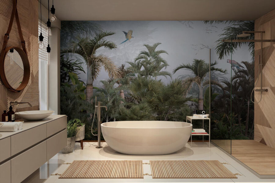 Transforma tu espacio en un refugio sereno con este encantador mural de un pájaro volando sobre un frondoso bosque tropical. Imagina despertarte con la relajante vista de verdes vibrantes y pájaros coloridos, que susurran aventuras lejanas. Es como traer un pedazo de paraíso directamente a tu sala de estar. Tus amigos podrían incluso pensar que te has mudado a un acogedor refugio en la selva. ¡Perfecto para aquellos que anhelan un poco de naturaleza sin los molestos insectos! Ya sea en un tranquilo rincón de lectura o en una animada sala de juegos, este mural crea un ambiente alegre y relajante. Siente la calidez de los trópicos todos los días, sin necesidad de protector solar.