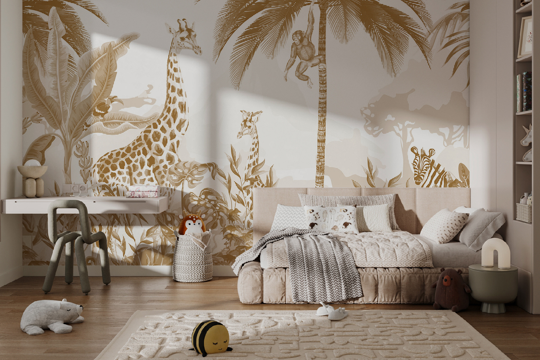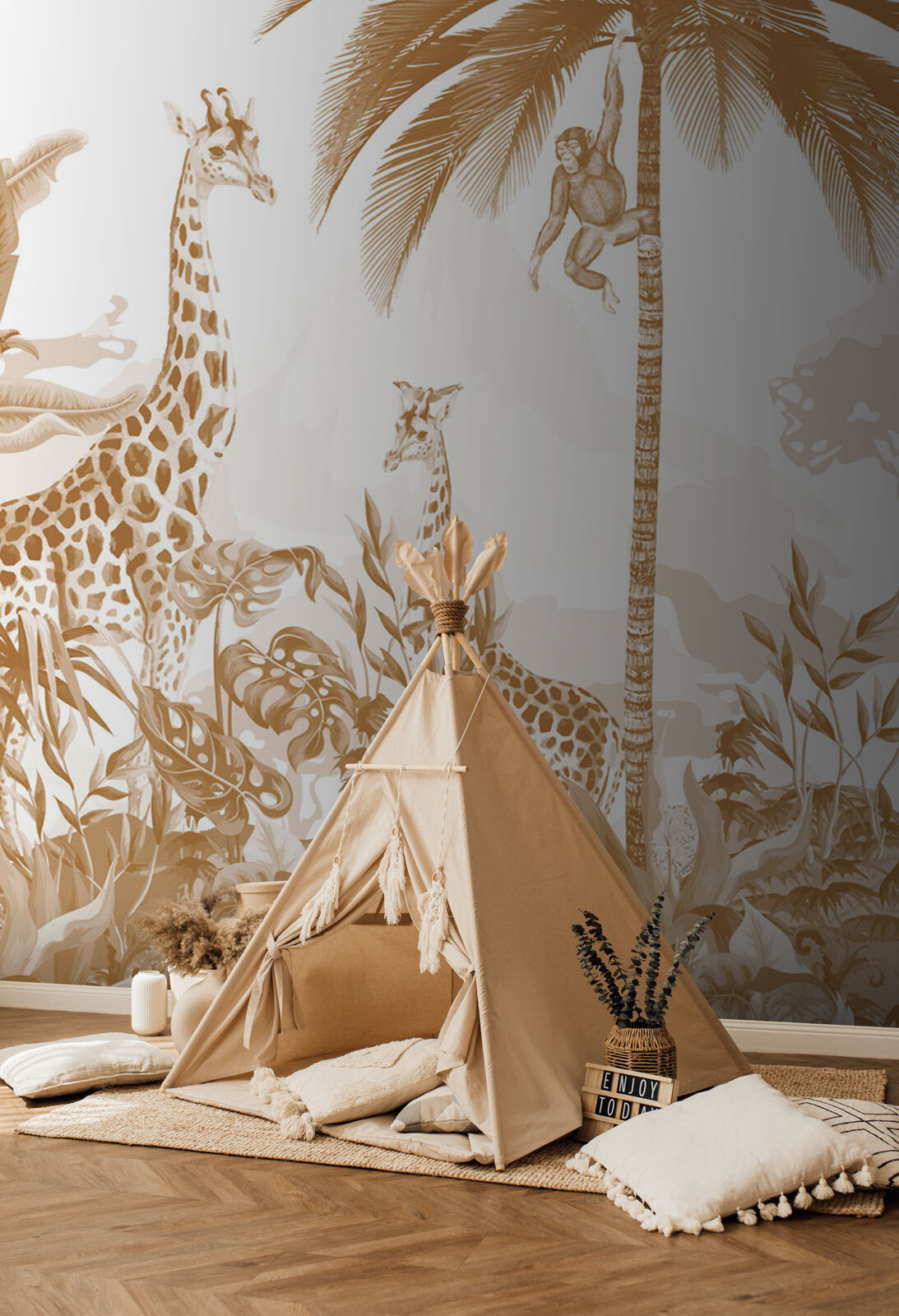 Imagínate adentrarte en una exótica aventura en la selva cada vez que entras en una habitación: ¡eso es lo que te ofrece este “Mural de jirafa y pájaro”! Con delicadas jirafas estirando sus largos cuellos y un descarado pájaro posado cerca, es como una escena sacada de un libro de cuentos. Tiene esa mezcla perfecta de encanto salvaje y vibraciones tranquilizadoras de la naturaleza. Perfecto para un amante de los animales o para cualquiera que quiera darle un toque moderno y fresco a su espacio. Cuélgalo en la habitación de un niño, en el salón o incluso en un estudio: despertará la imaginación y te arrancará una sonrisa en todo momento. Una escapada a la jungla sin salir de casa.