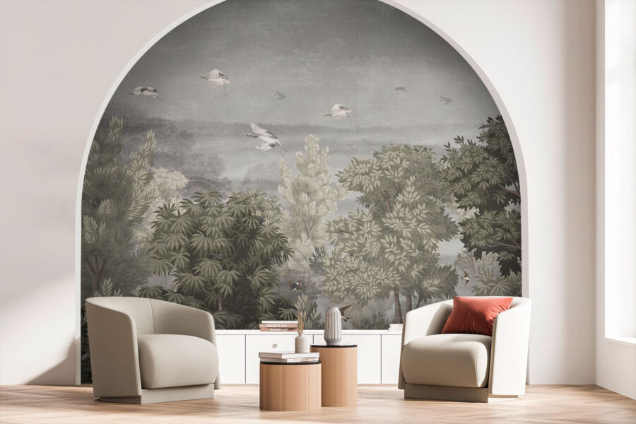 Imagínatelo: entras en una habitación y ¡zas! ahí está: un mural de pájaros volando en el cielo, rodeados de exuberante vegetación. Es como entrar en tu propio jardín secreto. ¿Siente ya la tranquilidad? Ahora, imagínate una suave brisa susurrando entre las hojas cada vez que lo mires. Es más que decoración: es una pequeña escapada de la rutina diaria.