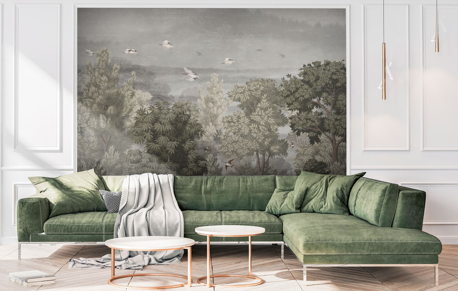 Imagínatelo: entras en una habitación y ¡zas! ahí está: un mural de pájaros volando en el cielo, rodeados de exuberante vegetación. Es como entrar en tu propio jardín secreto. ¿Siente ya la tranquilidad? Ahora, imagínate una suave brisa susurrando entre las hojas cada vez que lo mires. Es más que decoración: es una pequeña escapada de la rutina diaria.
