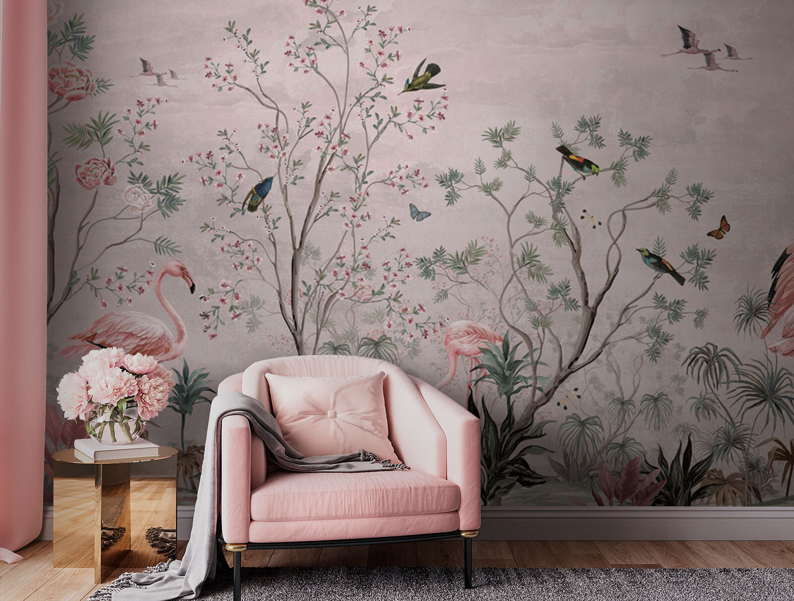 Transform any space into a tropical paradise with this stunning wall mural featuring graceful birds and lush plants. Imagine sipping your morning coffee while flamingos and vibrant butterflies flutter by, all in the comfort of your own home. The delicate colors bring a sense of calm, like a quiet day by the water. Plus, it’s a great conversation starter—who wouldn’t want to chat about their exotic new decor? Just picture your friends dropping by, oohing and aahing over this beauty. It’s like having a mini wildlife sanctuary right on your walls! Perfect for living rooms, bedrooms, or any space that just needs a little zing.