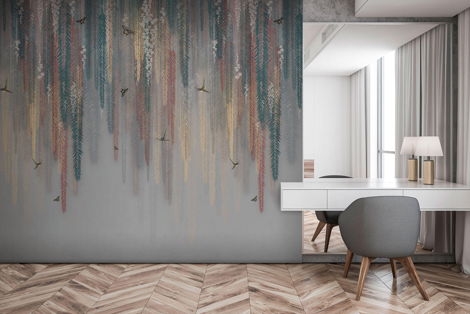 Vea exactamente cómo quedará su espacio con el nuevo papel pintado antes de comprarlo. Visualización profesional realizada por diseñadores expertos sin ningún coste ni obligación de compra.