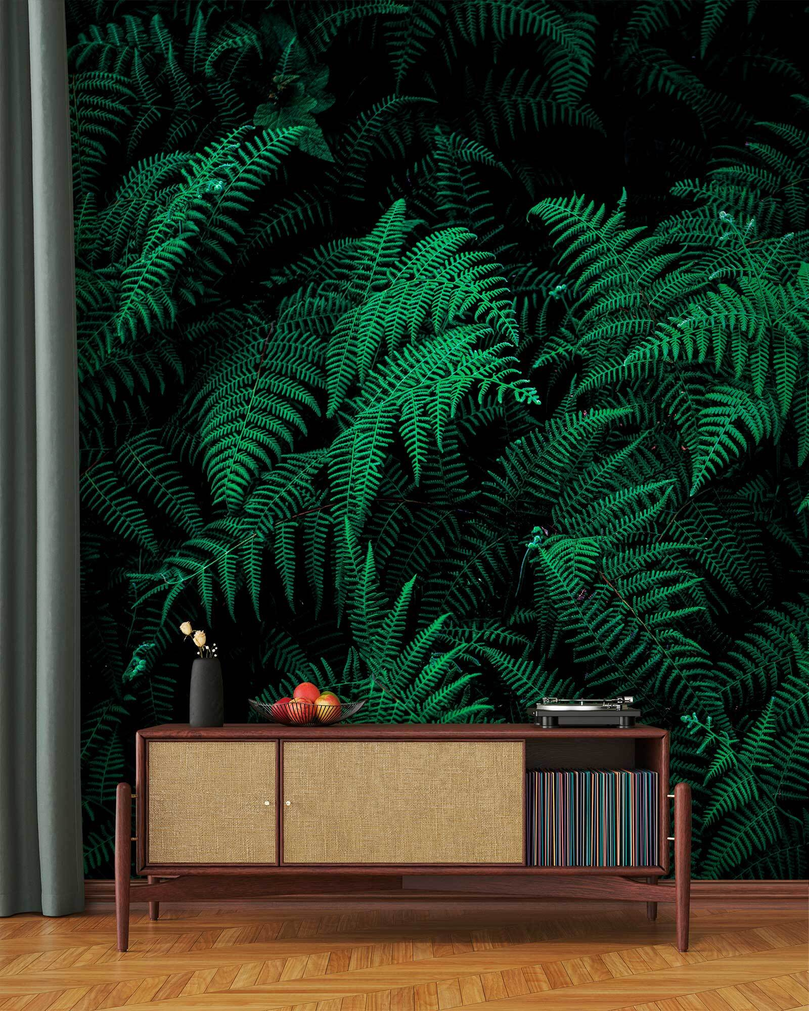 Perfecto para un acogedor rincón de lectura o un animado comedor, este mural invita a la relajación y suscita conversaciones. Tus amigos se maravillarán de tu atrevida elección decorativa, mientras tú te limitas a sonreír, porque ¿a quién no le gusta un poco de vegetación? Imagínese tomando el café de la mañana o compartiendo risas en un espacio fresco y lleno de vida. Deja que los helechos hagan su magia.