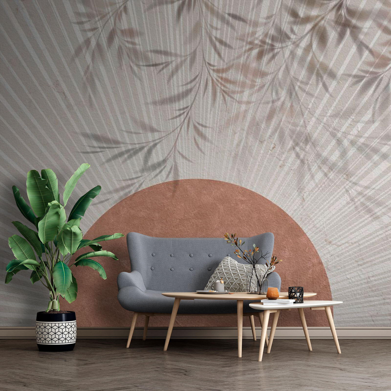 Transforme cualquier habitación con el encantador mural “Sombra de hojas en la pared”. Imagínese despertarse con los suaves patrones de las hojas bailando a la luz de la mañana, creando un ambiente sereno que le hará sentirse uno con la naturaleza, incluso si está dentro tomando café en pijama. Este diseño añade un toque suave y terroso, perfecto para una acogedora sala de estar o un tranquilo rincón de oficina. ¿Y a quién no le gusta un poco de inspiración natural en sus paredes? Es como tener un jardín tranquilo sin necesidad de tener un pulgar verde. Regala tranquilidad a tu espacio.