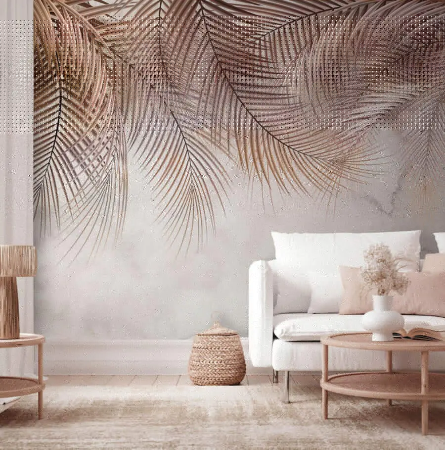 Imagine transformar su habitación en una serena escapada tropical con este mural de hojas de palmera en tonos pastel. Tiene una textura increíble que casi parece como si pudieras extender la mano y sentir las hojas meciéndose con una suave brisa. Perfecto para relajarse después de un largo día. Además, los colores apagados no son demasiado llamativos, lo justo para añadir un toque de naturaleza sin abrumar tu espacio. Imagínatelo en tu rincón chill-out favorito, tal vez donde tomas tu café matutino o te relajas con un buen libro. Es como llevar el aire libre al interior. Bueno, menos los bichos.