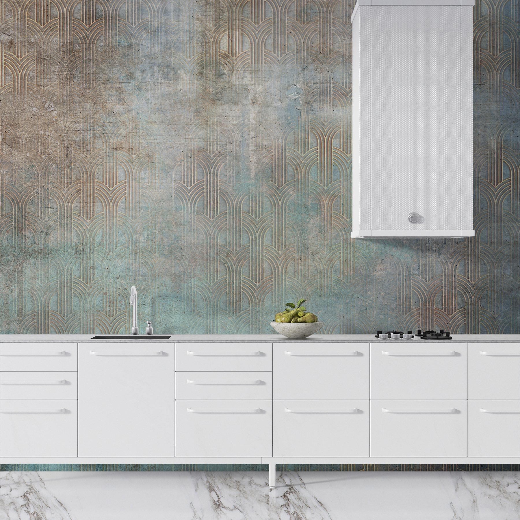 Transforme cualquier habitación en un vibrante refugio con este mural de pared que presenta un impresionante patrón geométrico abstracto en verde azulado y cobre. Es como llevar una obra de arte moderno a sus paredes, convirtiéndolo en el telón de fondo perfecto para reuniones acogedoras o momentos tranquilos descansando con un libro. Imagina una mañana soleada, con la luz filtrándose y proyectando sombras juguetonas que bailan sobre las formas geométricas. Seguro que dará que hablar, ya que su elegante diseño susurra historias de creatividad y elegancia. Además, es una actualización sencilla que puede hacer que todo el lugar parezca fresco y acogedor. Perfecto para los que buscan un toque de personalidad en su decoración.