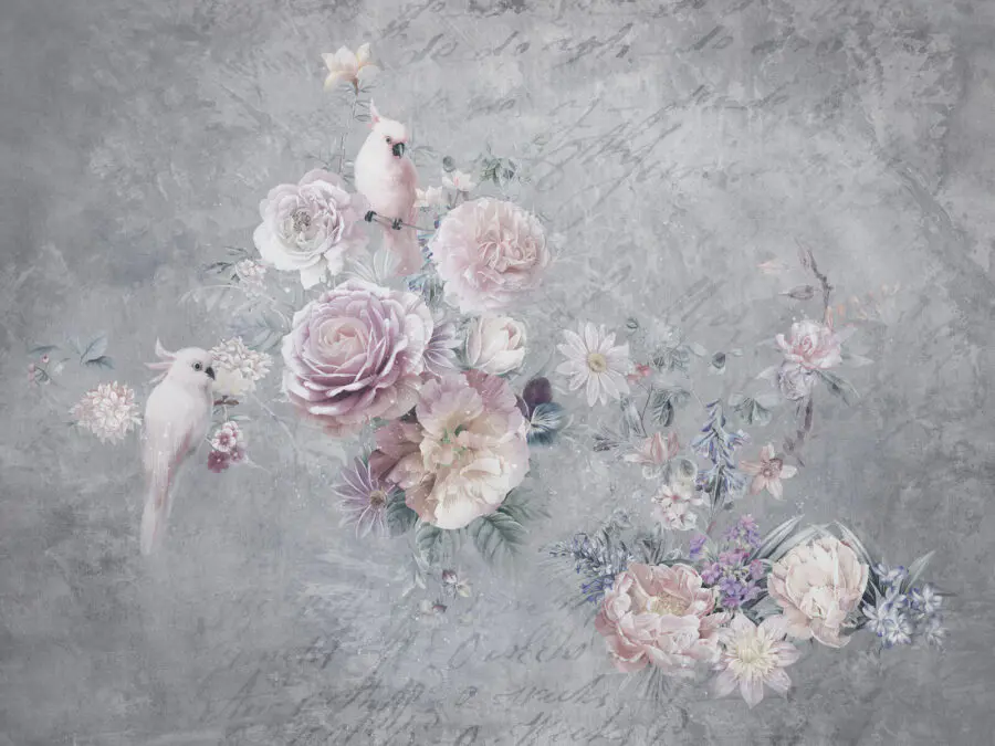 Imagina despertarte con este encantador mural de flores en tonos pastel y pájaros posados: ¡te levantará el ánimo al instante! Con sus delicadas flores y sus alegres amigos emplumados, es como tener un trozo de paraíso en tu salón. Los colores suaves combinan a la perfección con cualquier decoración, por lo que es muy versátil.
