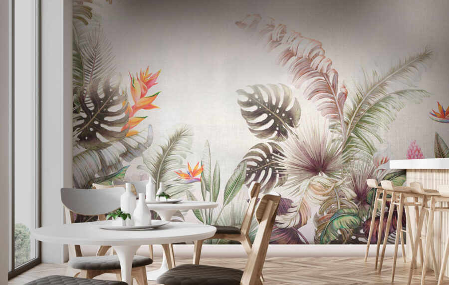 Transforme cualquier espacio en un vibrante oasis con este impresionante mural de pared con hojas tropicales y vivas flores. Imagínatelo: cada hoja y cada flor danzan con color, aportando un toque paradisíaco al salón. Imagínese despertarse con esta escapada tropical; es como ir de vacaciones cada día. Los verdes intensos y los estallidos de flores ardientes crean una sensación de calidez y alegría que hará que cualquier pared cobre vida. Perfecto para un rincón acogedor o para una pared llamativa, este mural aporta una energía refrescante que sin duda hará que los invitados se detengan a admirarlo. Quién sabe, ¡puede que incluso despierte algunos sueños de playas de arena y brisas cálidas!