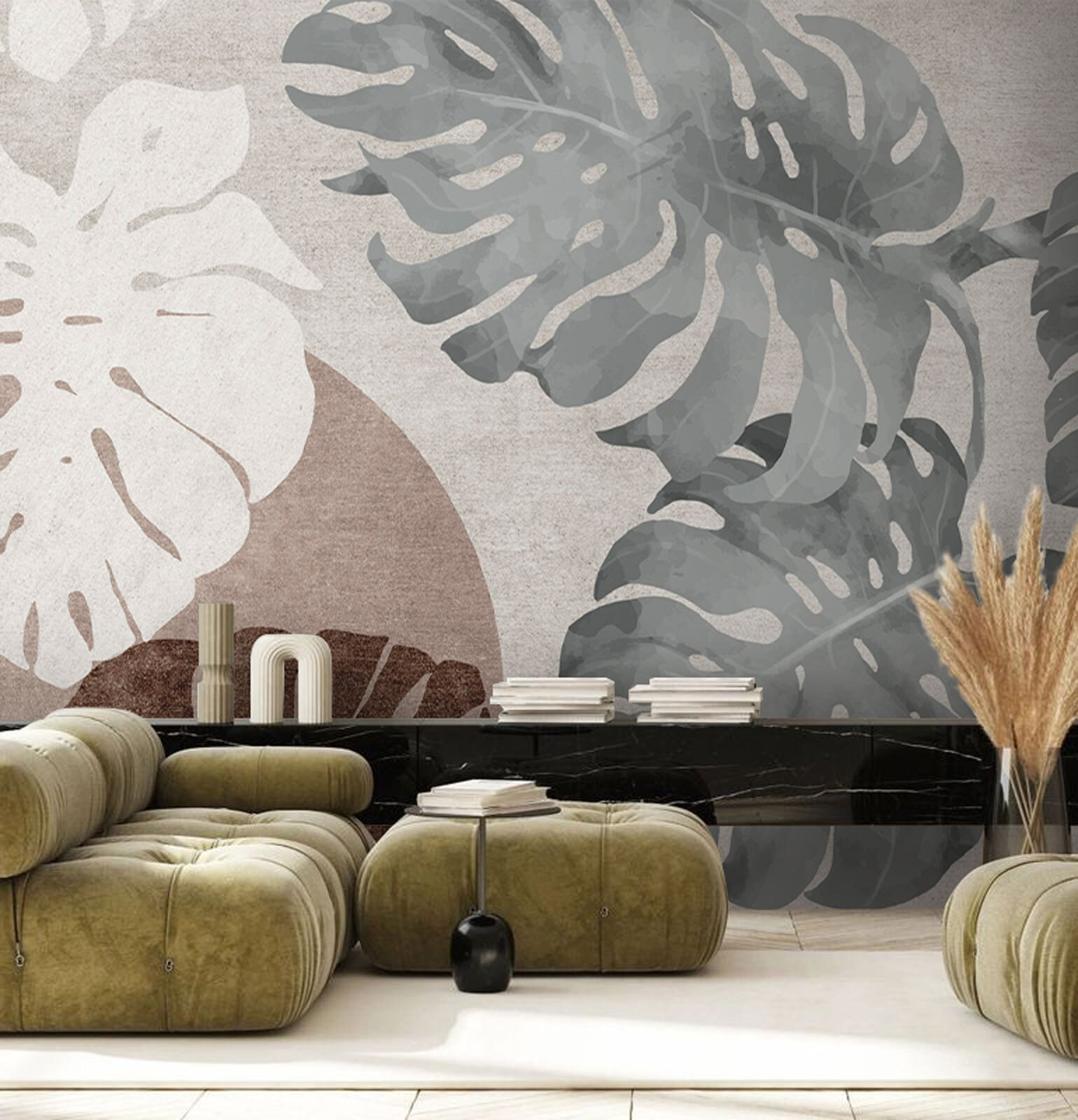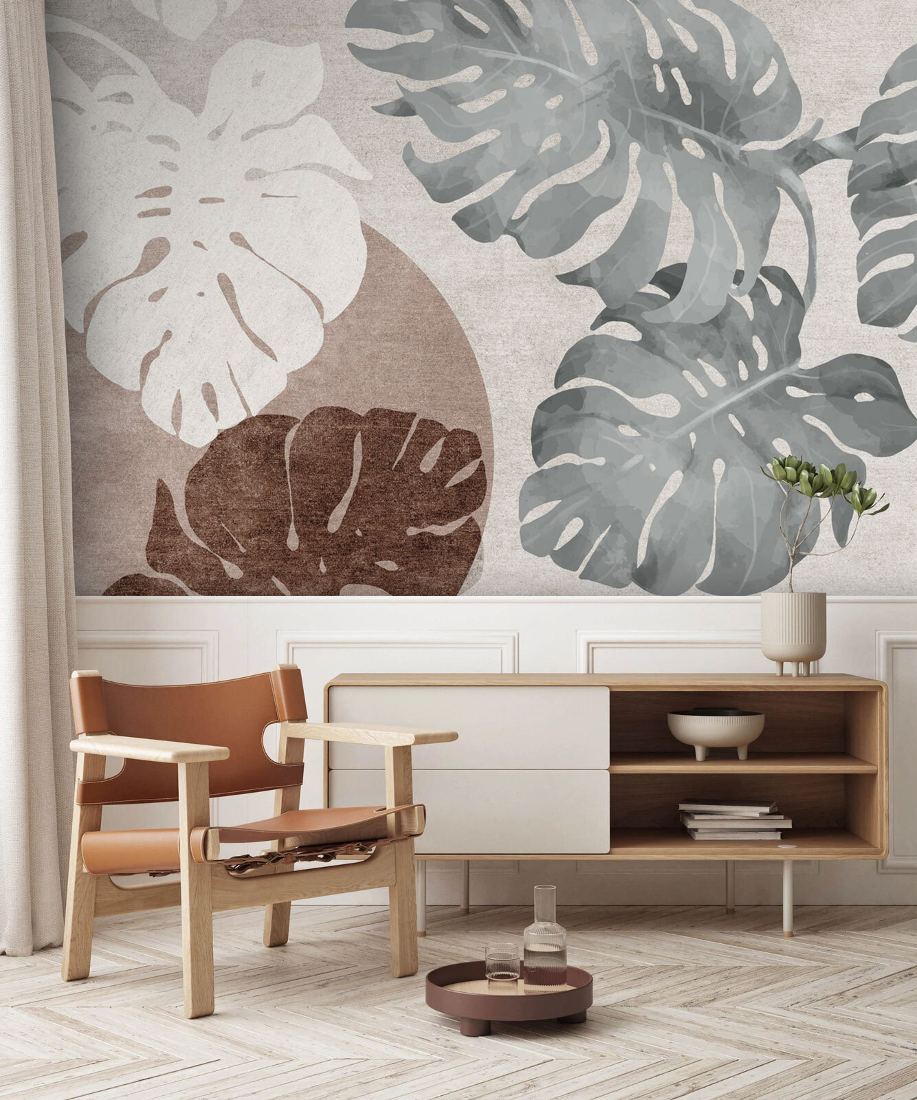 Transforma cualquier estancia en un oasis con este impresionante mural con motivos naturales en tonos apagados. Imagínate entrar en un espacio donde los tonos suaves y delicados te envuelven como un cálido abrazo. Las elegantes hojas de palmera crean un fondo sereno, perfecto para un rincón de lectura acogedor o un animado lugar de reunión. Susurra calma, perfecto para esos días en los que la vida se siente un poco agitada. Este mural no solo decora las paredes, sino que lleva la naturaleza al interior, fomentando un ambiente tranquilo. Así que prepárate para ver cómo tus amigos se maravillan ante tu elegante y frondoso refugio. ¿Quién diría que la decoración del hogar podría parecer una escapada relajante?