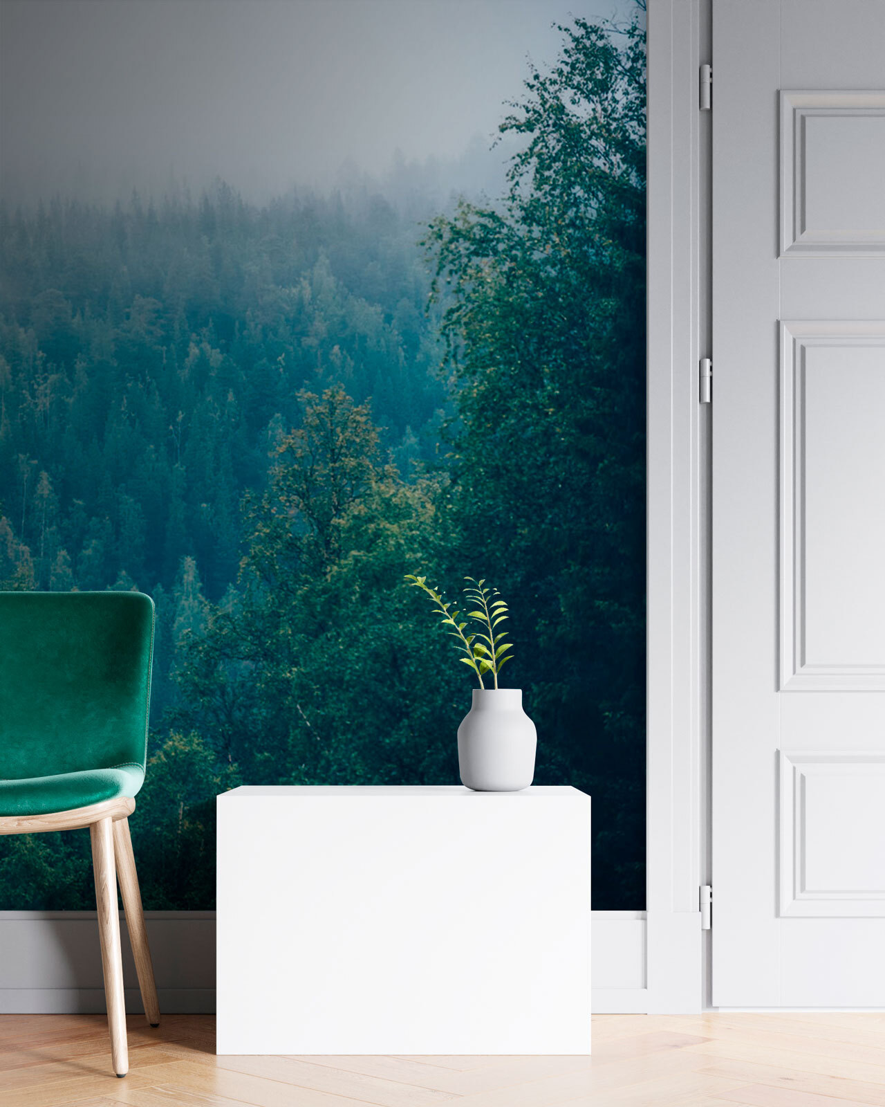 Transforma cualquier espacio con el «Mural de pared Bosque de árboles con niebla», donde la naturaleza se entrelaza con el arte en un abrazo de ensueño. Imagina entrar en un bosque sereno, donde la niebla envuelve suavemente los imponentes árboles. Es como llevar un pedazo de tranquilidad directamente al salón o a ese acogedor rincón de lectura. Este mural no solo es bonito, sino que invita a la calma e inspira sueños despiertos.