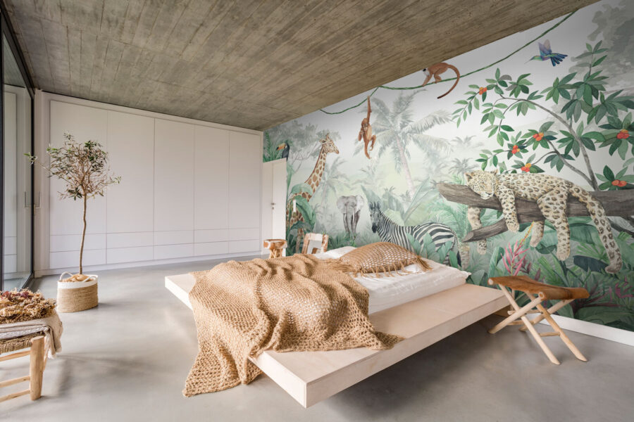 Imagina entrar en una habitación y ser transportado instantáneamente a una exuberante selva, con este impresionante mural “Guepardo durmiendo en la rama de un árbol”. Es como tener un trozo de naturaleza salvaje en su propia casa y, seamos sinceros, ¿quién no querría eso? Esta acuarela es tan vívida y relajante que te parecerá oír los sonidos de la selva y sentir el aire húmedo.