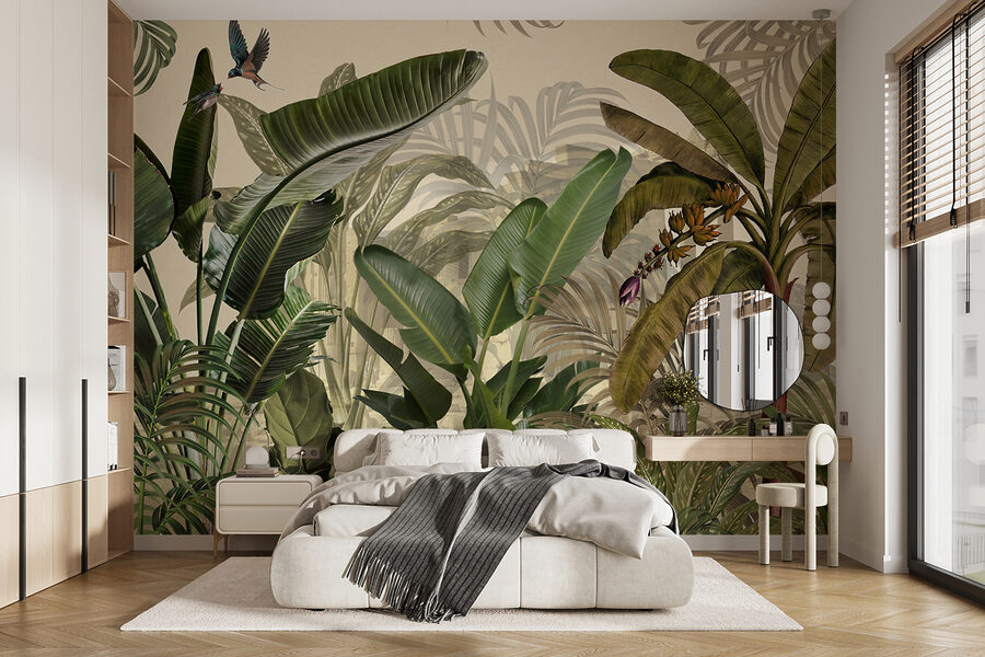 Echa un vistazo a este impresionante “Mural de pared Hojas tropicales y pájaros en armonía”. Es como tener un mini retiro en la selva justo en tu salón. En serio, ¿quién necesita unas vacaciones cuando puede rodearse de exuberantes hojas verdes y pájaros vibrantes todos los días? Imagínate relajándote con una taza de café, sintiéndote como en el corazón de un paraíso tropical. La mezcla de grandes y frondosas hojas verdes y esos encantadores pajaritos es pura perfección, ¿no crees? Perfecto para añadir ese aire fresco y exótico a tu espacio vital. Tanto si quieres un rincón acogedor como un fondo animado para tus llamadas de zoom, ¡bam, magia selvática instantánea! Cada mirada te hará sentir un poco más sereno, un poco más conectado con la naturaleza… todo ello sin salir de casa. No es sólo un fondo de pantalla, es todo un estado de ánimo. Créeme, esto cambia las reglas del juego.👀🦜🌿