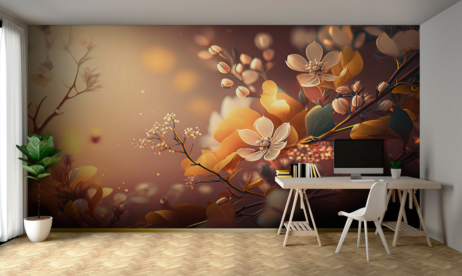 Imagine entrar en una habitación donde las paredes florecen con delicadas flores de colores cálidos. Este mural de pared “Delicate Blossoms” transforma cualquier espacio en un brillante refugio floral. Perfecto para esos días grises de invierno en los que un toque de primavera se siente como el cálido abrazo de un amigo. Los tonos suaves de amarillos, naranjas y verdes sutiles bailan por el mural, añadiendo profundidad y una suave sensación de movimiento. Es como tener un jardín que nunca se marchita en el salón de casa. Imagínate un rincón de lectura acogedor o incluso un dormitorio: cada mirada a estas flores es un dulce recordatorio de la belleza de la naturaleza. Además, tiene algo muy acogedor y relajante. Este mural no sólo decora una pared, sino que aporta una sensación de serenidad y suave alegría a su hogar. ¡Una dosis diaria de deleite floral sin la regadera! 🌸