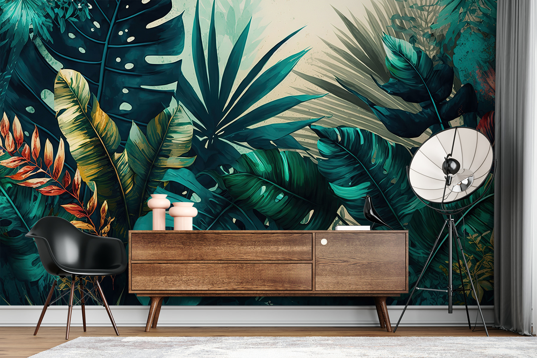 ¿Alguna vez ha querido adentrarse en un exuberante paraíso tropical sin salir del salón de su casa? Este mural, cuyo caprichoso nombre es “Follaje tropical vibrante en armonía”, podría ser su portal mágico personal. Imagínatelo: estás tomando el café de la mañana, disfrutando de la serena vibración de las grandes hojas de palmera y el colorido follaje que parecen bailar juntos en tus paredes. Tiene serias vibraciones selváticas sin, ya sabes, los bichos de verdad. Ideal para cualquiera que anhele un poco de naturaleza pero prefiera mantenerla en el interior. Siéntete como Tarzán -o Jane- paseando entre la vegetación, o simplemente deja que los atrevidos colores refresquen tu espacio. Perfecto para esa pared que parece un poco sosa, ¿no crees?